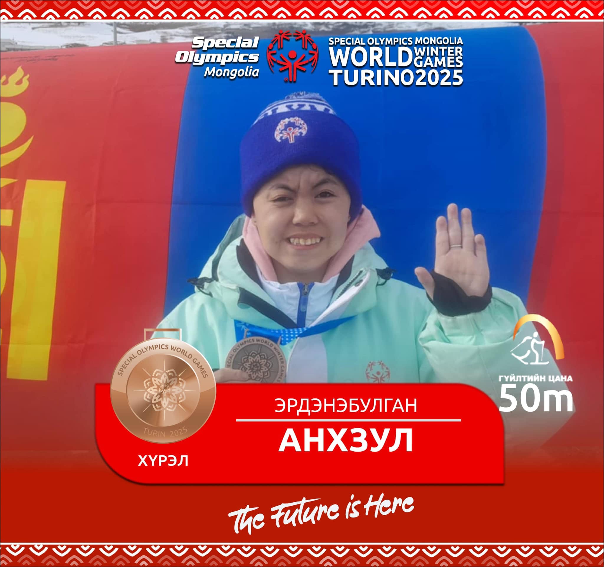 Итали Улсын Турин хотод тусгай олимпын дэлхийн өвлийн наадам гуравдугаар сарын 8-16-ны өдрүүдэд явагдаж байна. Манай улсаас зургаан спортын төрөлд 24 тамирчин өрсөлдөж байгаа юм. Бүжгийн ганцаарчилсан төрөлд Б.Мөнх-Эрдэнэ, цасны гуталтай гүйлтийн 50 метрийн зайд Б.Бямба-Эрдэнэ нар мөнгөн медаль хүртсэн. Цасны гуталтай гүйлтийн 200 метрийн зайд Ө.Елмирза, гүйлтийн цанын төрөлд Э.Анхзул нар хүрэл медаль хүртлээ. “Турин-2025” Тусгай олимпын дэлхийн өвлийн наадмаас одоогийн байдлаар Монголын баг тамирчид есөн медаль хүртээд байна.