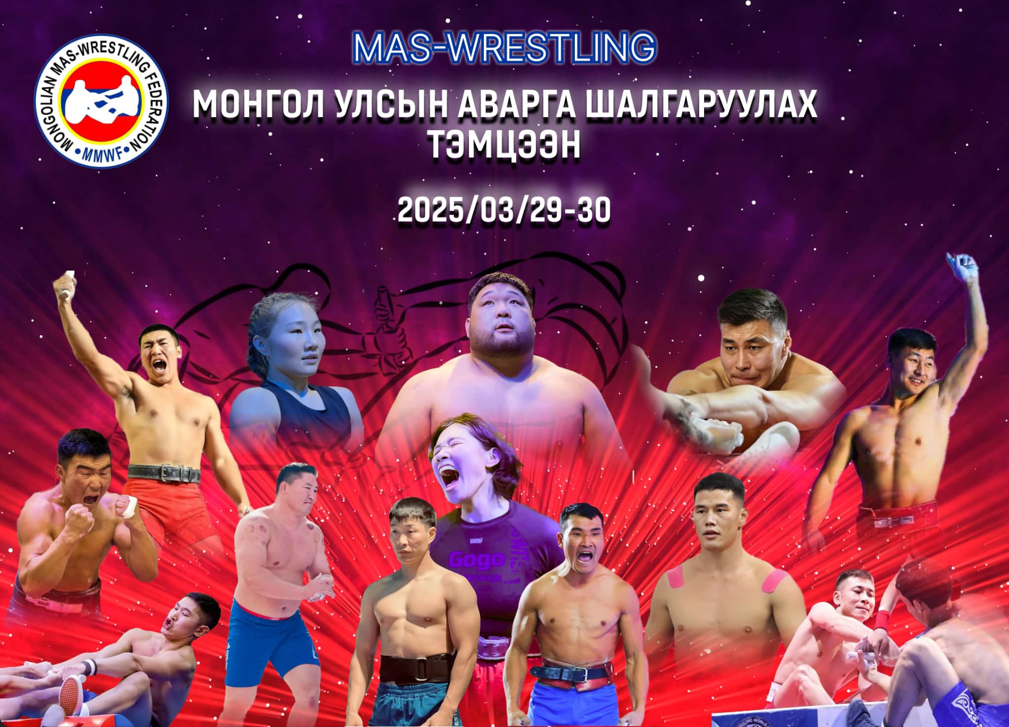 Монголын "Mas wrestling" буюу модон барилдааны улсын аварга шалгаруулах тэмцээн болно. Модон барилдааны 12 дахь удаагийн УАШТ 2025 оны гуравдугаар сарын 29-30-ны өдрүүдэд “Astory event hall”-д зохион байгуулагдана.