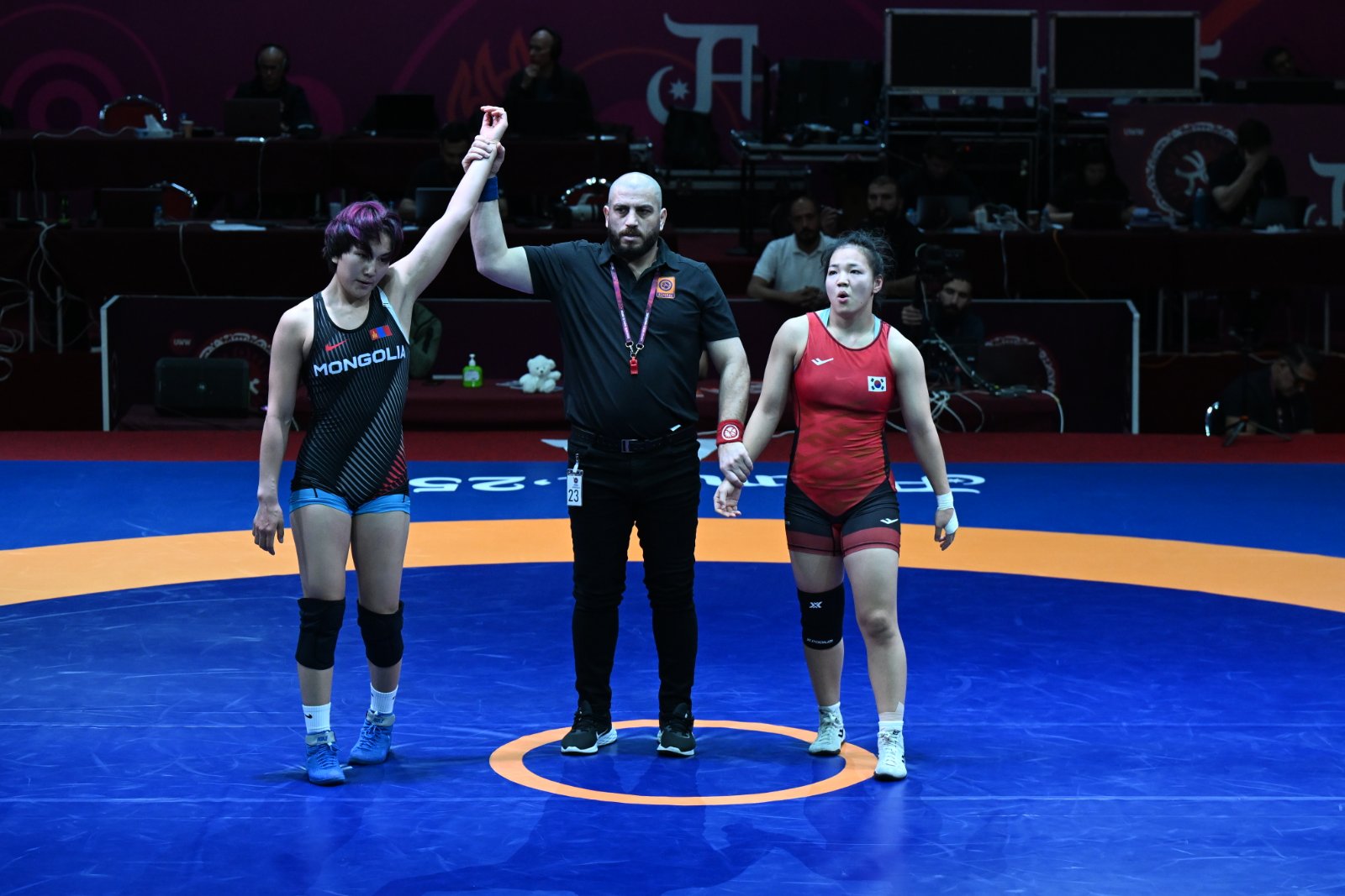 Чөлөөт бөхийн Азийн аварга шалгаруулах тэмцээн дөрөв дэх өдрөө үргэлжилж байна. Өнөөдөр манай таван эмэгтэй бөх зодоглож байгаа. Эмэгтэйчүүдийн 65 кг-ын жинд хүч сорьж буй “Алдар” спорт хорооны бөх, ОУХМ Түвшинжаргалын Энхжин хоёрдугаар тойрогт шөвгийн наймд Өмнөд Солонгосын бөх Бак Жеон Гаэ-г даралтаар цэвэр ялж, хагас шигшээд шалгарлаа.