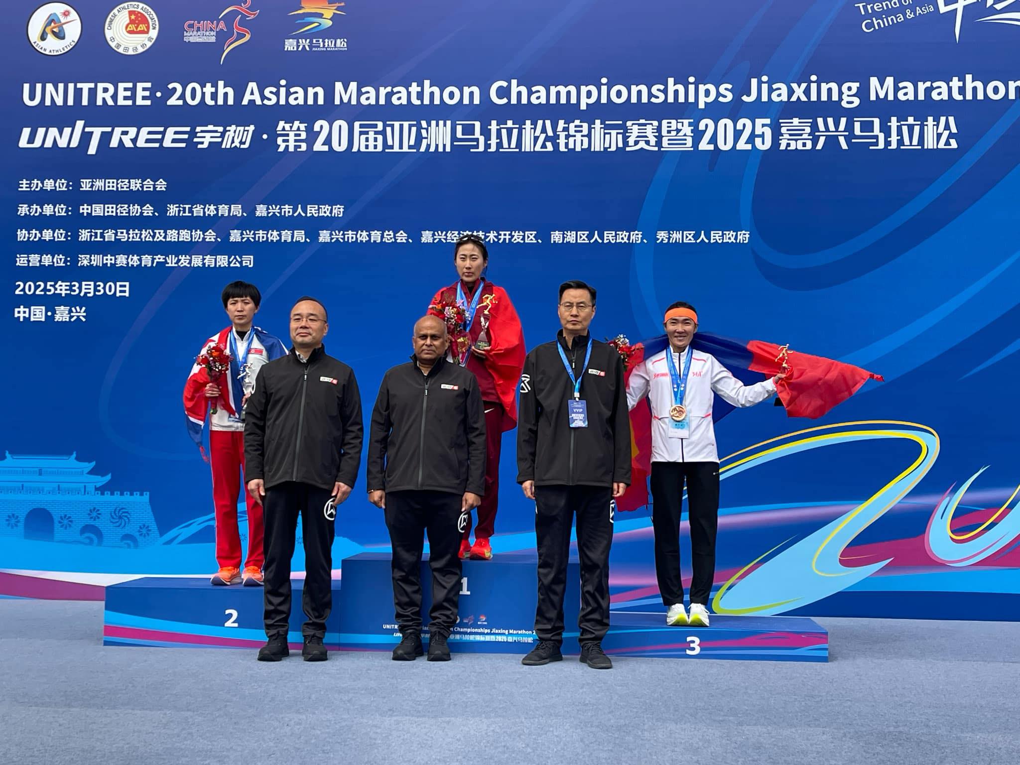 Марафон гүйлтийн Азийн аварга шалгаруулах тэмцээн болж байна. Азийн аваргын эмэгтэйчүүдийн марафонд ОУХМ Галбадрахын Хишигсайхан 2:28:55 цагийн амжилтаар хүрэл медал хүртлээ. Харин эрэгтэйчүүдийн марафон гүйлтэд гавьяат тамирчин Бат-Очирын Сэр-Од 2:15:12 цагийн амжилтаар зургадугаар байрт орлоо.