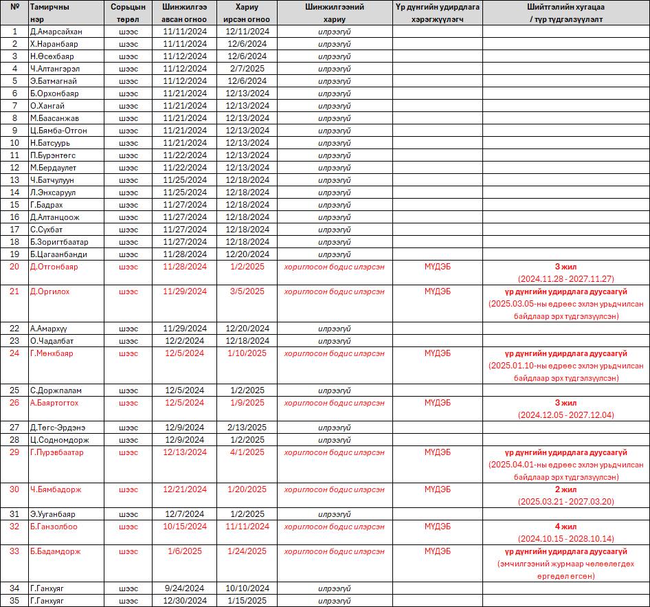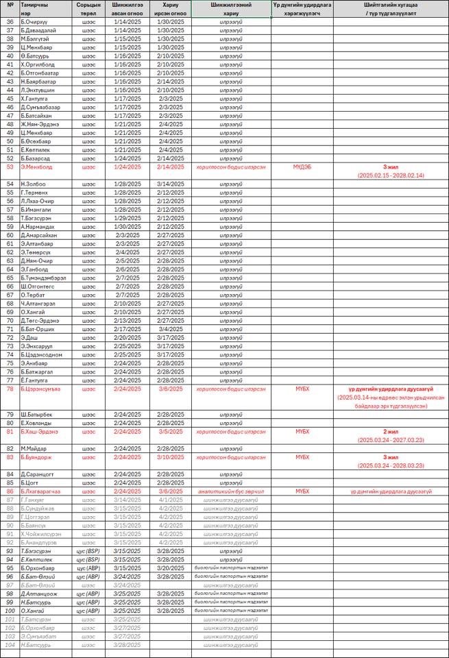 Мөн шинжилгээнд хамрагдсан бөхчүүдэд илэрсэн хориглосон бодис, тухайн тамирчинд оноосон шийтгэл болон түр түдгэлзүүлэлт хийсэн зэрэг талаар Монголын допингийн эсрэг үндэсний байгууллагаас мэдээллээ.