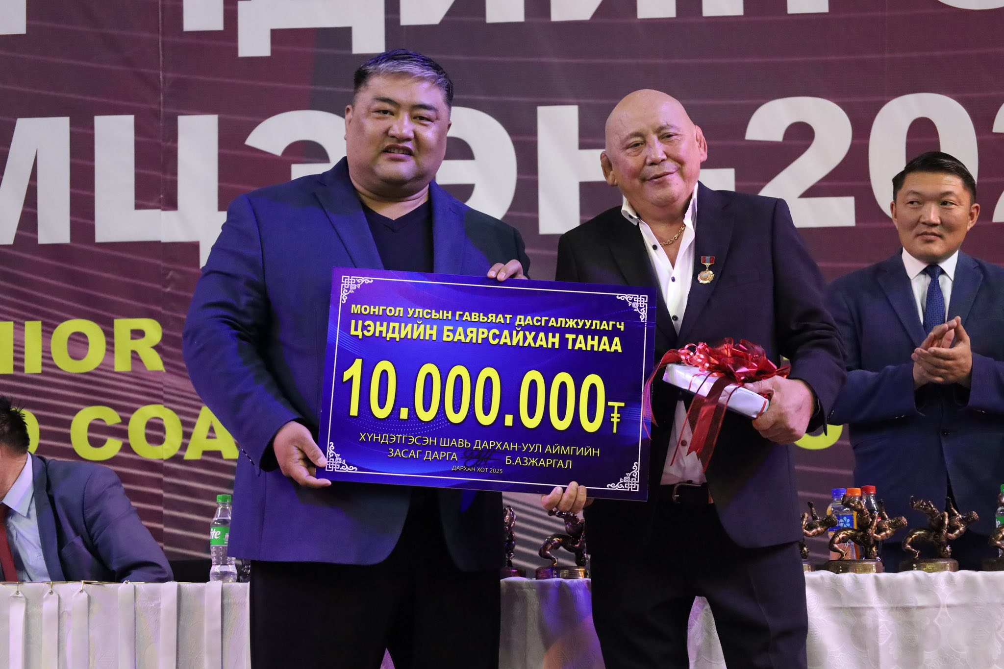 Нээлтийн үеэр Дархан-Уул аймгийн Чөлөөт бөхийн холбооноос гавьяат дасгалжуулагч Ц.Баярсайханд чөлөөт бөхийн спортын хөгжилд оруулсан нөр их хувь нэмэрт нь талархан 10 сая төгрөг, өргөө цагаан гэр бэлэглэлээ. Мөн аймаг орон нутгаас олон улсын тэмцээнд хүрэлцэн ирсэн гадаадын дасгалжуулагчдад үндэсний үйлдвэрлэлийн бүтээгдэхүүн бэлтгэлийн арьсан цүнхийг бэлэг болгон өглөө.
