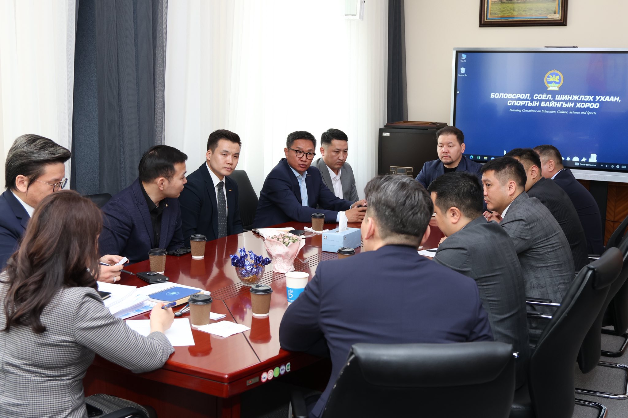 Үндэсний шигшээ багийн тамирчдын бэлтгэлийн орчин, нөхцөлийг сайжруулах хүрээнд Спортын төв ордонд үйл ажиллагаа явуулж буй нийслэлийн ерөнхий боловсролын спортын дунд сургуулийн асуудлаар Биеийн тамир, спортын улсын хороо, Монголын үндэсний олимпын хороо, Үндэсний шигшээ багийн төлөөлөл болон спортын холбоодтой уулзалт хийж, санал солилцлоо.