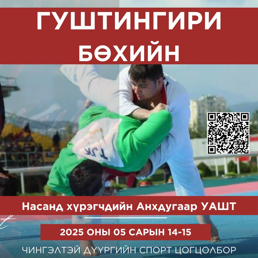 Татарстаны гуштингири буюу бүстэй бөхийн насанд хүрэгчдийн анхдугаар улсын аварга шалгаруулах тэмцээн болно. Тус УАШТ тавдугаар сарын 14-15-ны Чингэлтэй дүүгийн Спортын ордон явагдана. Тэмцээн эрэгтэйчүүдийн 60, 65,78, 83, -90, +90 кг, эмэгтэйчүүдийн 52, 57, 63, -70, +70 кг-ын жингийн ангиллаар явагдах юм байна.
