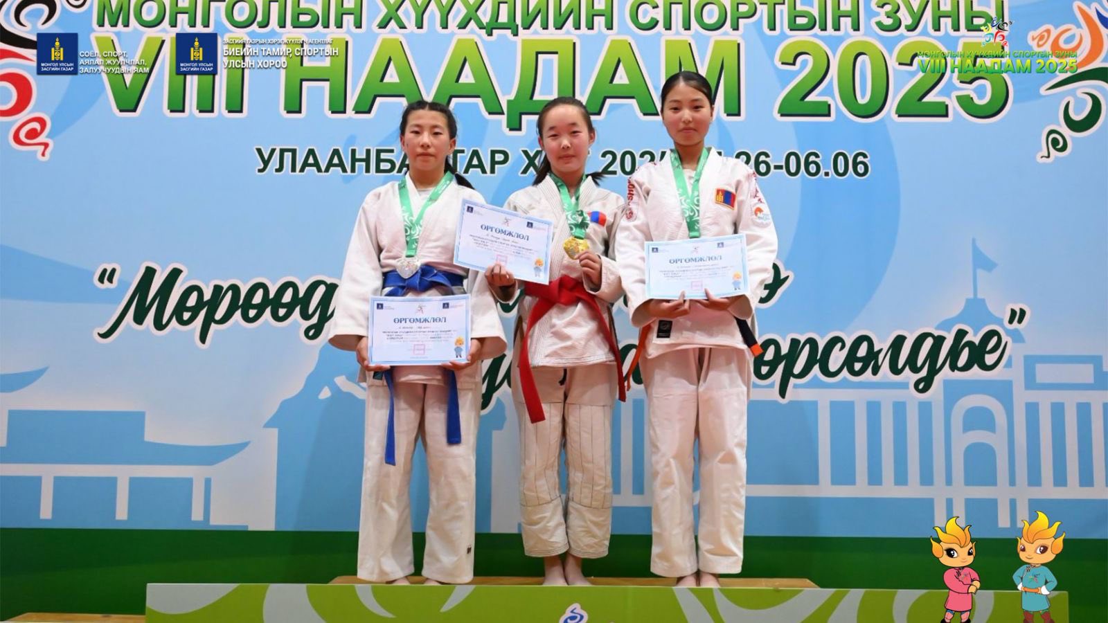 Монголын хүүхдийн спортын зуны VIII наадам үргэлжилж байна. Өчигдөр хүүхдийн наадмын жюү жицүгийн тэмцээний эхний өдрийн медальтнууд тодорсон.