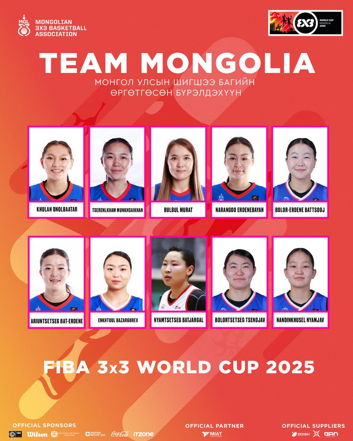 Монгол Улсын нийслэл Улаанбаатар хотноо сагсан бөмбөгийн “FIBA 3x3 World Cup- 2025” тэмцээн болох гэж байна. Тус ДАШТ зургадугаар сарын 23-29-ний өдрүүдэд зохион байгуулагдах юм. Энэ удаагийн “FIBA 3x3 World Cup 2025” тэмцээнд оролцох Монгол Улсын эмэгтэй шигшээ багийн өргөтгөсөн бүрэлдэхүүн тодроод байна.