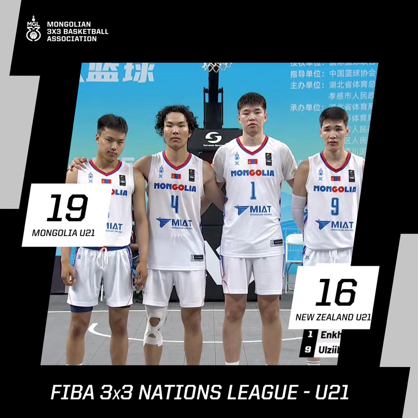 БНХАУ-д сагсан бөмбөгийн 3х3-ын “U21” насны Ази Номхон далайн бүсийн тэмцээн болж байна. Тус тэмцээнд манай залуучуудын шигшээ баг амжилттай өрсөлдөж “FIBA 3x3 Nations League, Stop-1” тэмцээний аварга багаар тодорлоо. Тэд аваргын төлөөх тоглолтод Шинэ Зеландын багийг 19:16-аар буулган авсан. Мөн Японы багийг 21:18-аар, Сингапурын багийг 22:11-ээр тус хожиж ялалт авчээ. Манай багийн бүрэлдэхүүнд Амарзаяагийн Билгүүн, Баярбаатарын Энх-Амар, Мягмарсүрэнгийн Өлзийбат, Чимэдцэрэнгийн Чойжилсүрэн нар тогложээ. Харин охидын баг, Хятад Улсын багтай хийсэн тоглолтод 21:15-ын харьцаатай ялагдал хүлээсэн. Хэсгийн сүүлийн тоглолтод Сингапурын багийг 20:9-ээр хожсон байна.