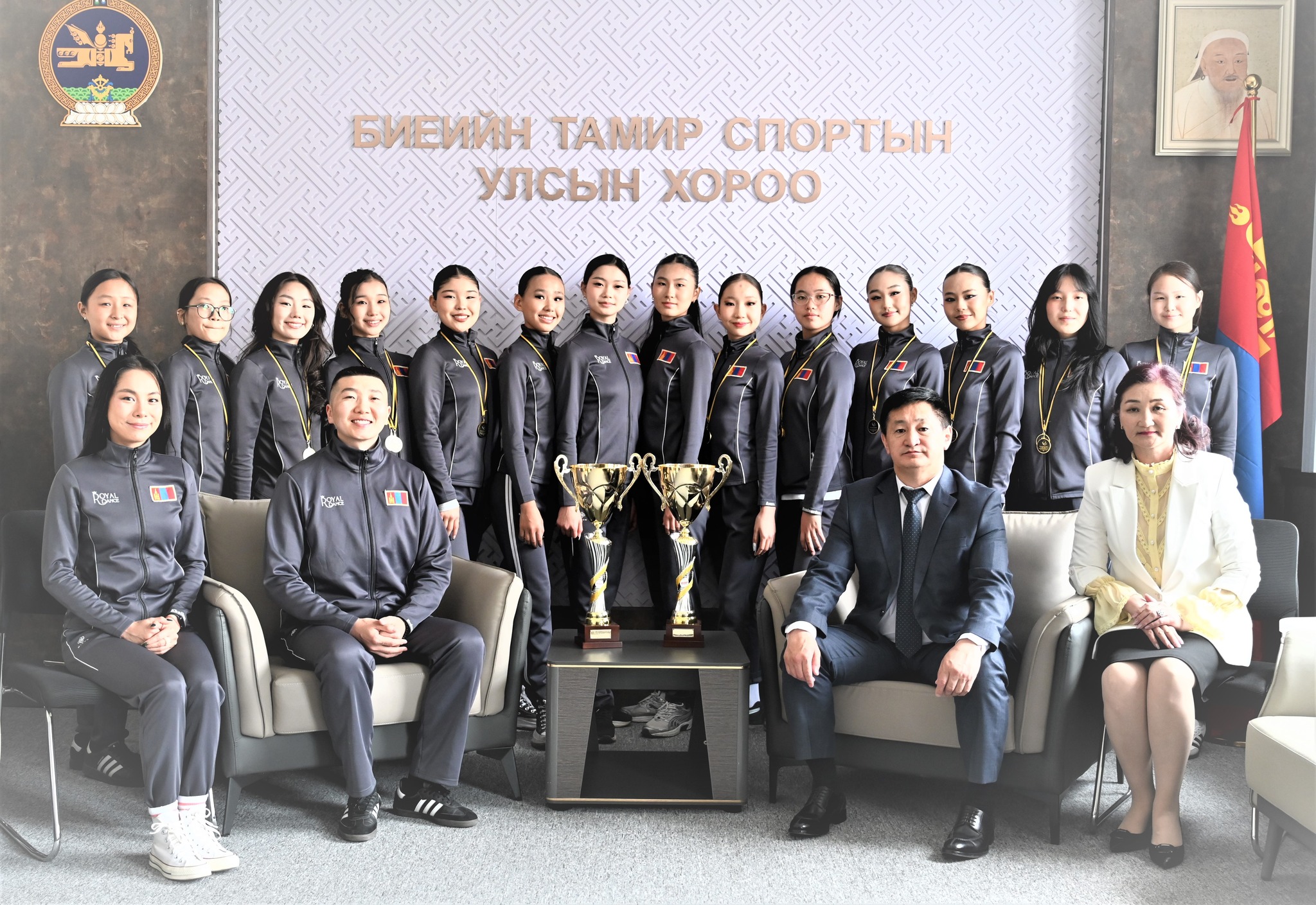 Баг тамирчдыг өнөөдөр Биеийн тамир, спортын улсын хорооны Төрийн захиргааны удирдлагын газрын дарга О.Баттулга, Спортын бодлогын хэрэгжилтийн хэлтсийн дарга Ж.Баасансүрэн, Гадаад харилцаа, мэдээллийн технологийн хэлтсийн дарга Н.Оюунбат нар хүлээн авч уулзлаа.