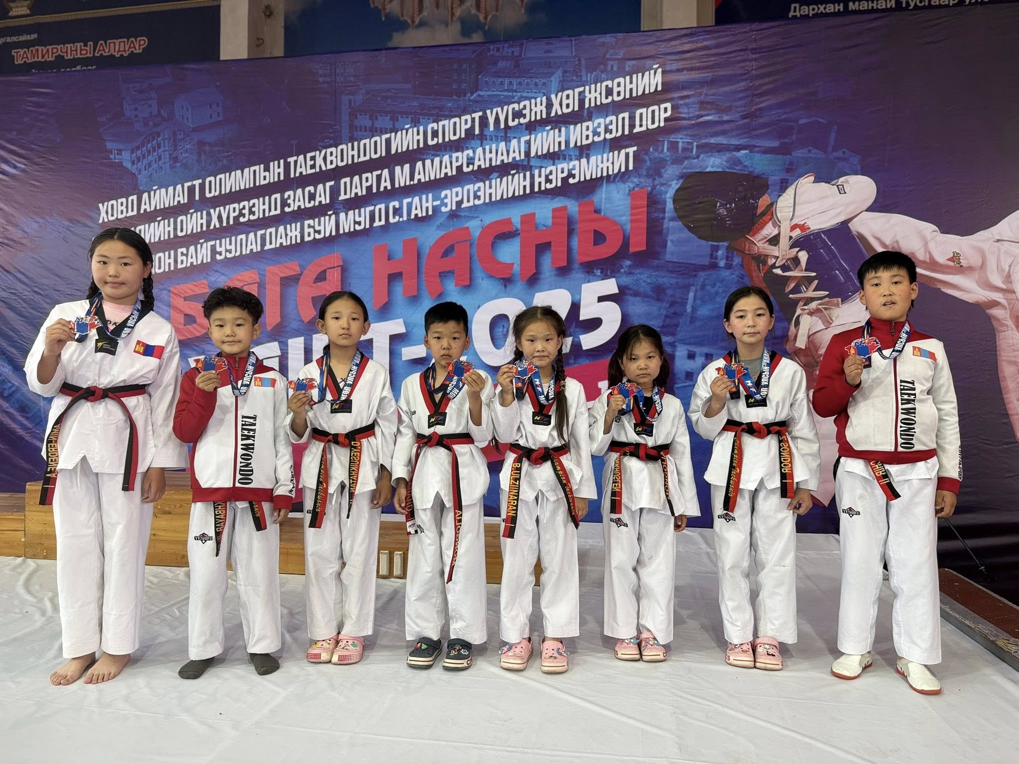 Ховд аймагт Олимпын таэквондогийн спорт үүсэж хөгжсөний 30 жилийн ойн хүрээнд Засаг дарга М.Амарсанаагийн ивээл дор зохион байгуулагдаж буй МУГД С.Ган-Эрдэнэ багшийн нэрэмжит 2025 оны бага насны УАШТ энэ сарын 14-15-ны өдрүүдэд боллоо. Тэмцээнд 39 байгууллагын 620 гаруй тамирчин хурд хүч, авхаалж самбаагаа сорин өрсөлдлөө. УАШТ-ий “А” ангилал буюу олон улсын “Хар” бүсний ангилалд “ЭРДЭНЭТ ТАЭКВОНДО ХОЛБОО”-ны тамирчид амжилттай оролцов.