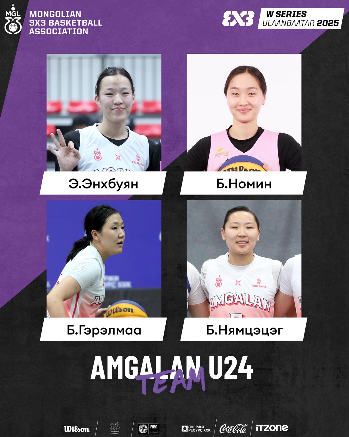 “Улаанбаатар эмэгтэйчүүдийн дэлхийн Цуврал” тэмцээнд оролцох “Amgalan U24” багийн бүрэлдэхүүнд Э.Энхбуян, Б.Номин, Б.Гэрэлмаа, Б.Нямцэцэг нар тоглоно. Манай баг тэмцээний “C” хэсэгт АНУ, Австралийг багуудтай өрсөлдөнө. Хэсгийн эхний тоглолтоо өнөөдөр 15:05 цагаас Австралийн шигшээ багийн эсрэг хийнэ.
