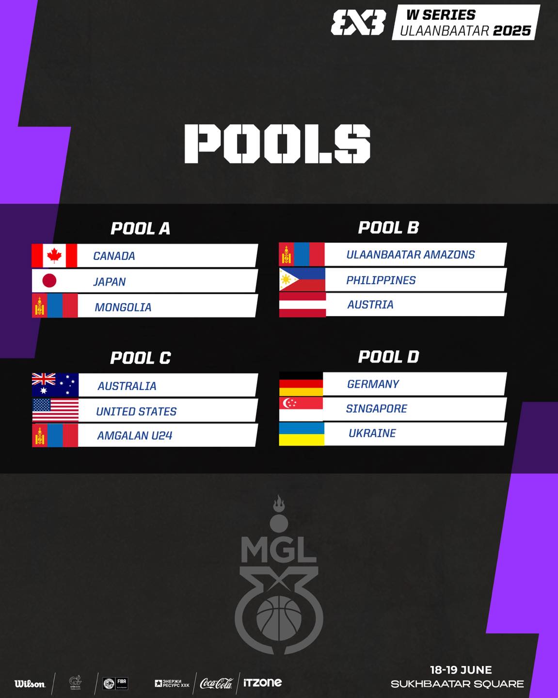 “Ulaanbaatar Amazons” багийн бүрэлдэхүүнд О.Хулан, Н.Нандинхүсэл, М.Булбул, Б.Ариунцэцэг нар тоглоно. “Ulaanbaatar Amazons” баг тэмцээний “B” хэсэгт Австри, Филиппины багуудтай өрсөлдөнө. Хэсгийн эхний тоглолтоо өнөөдөр 15:30 цагаас Австрийн шигшээ багийн эсрэг хийнэ.