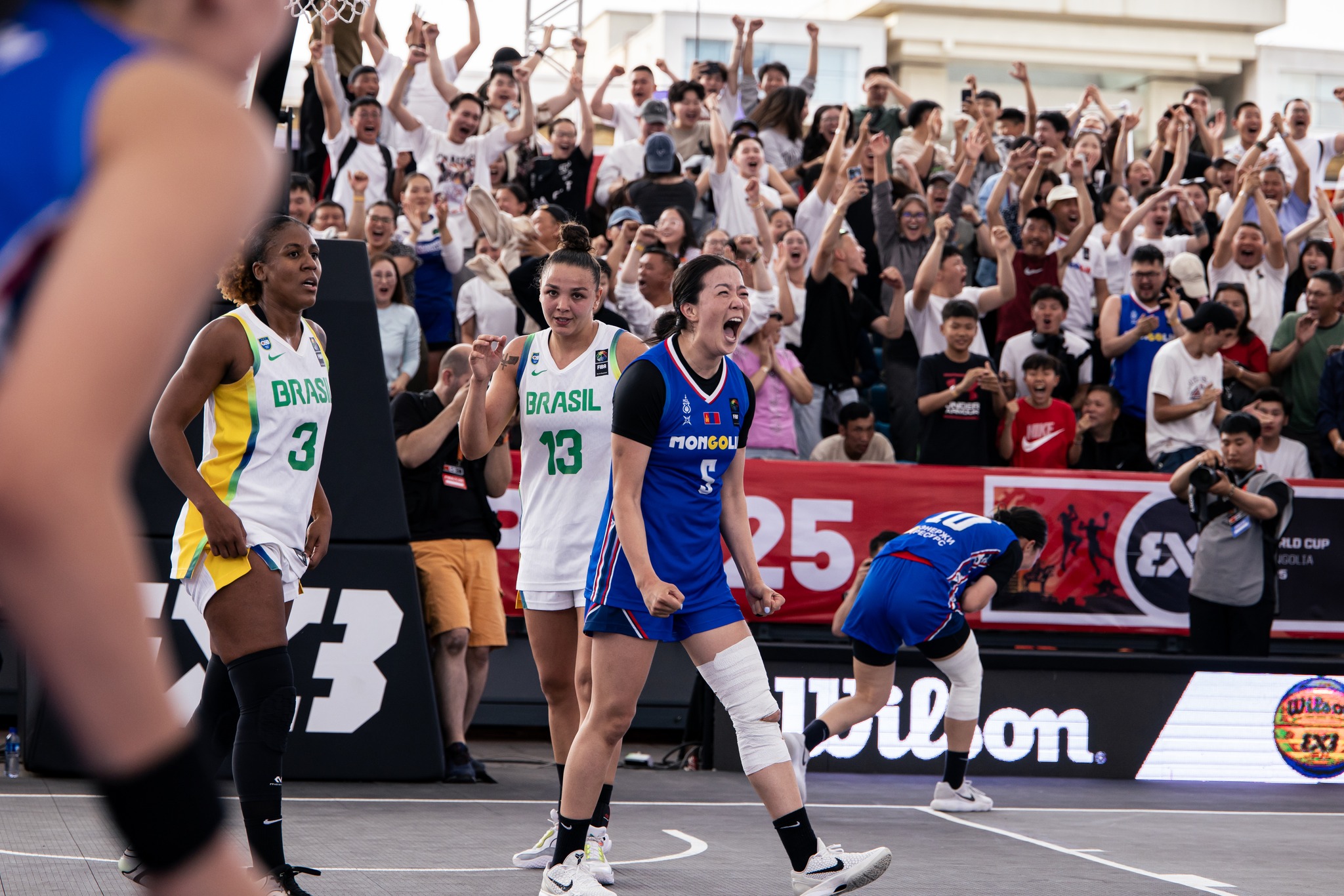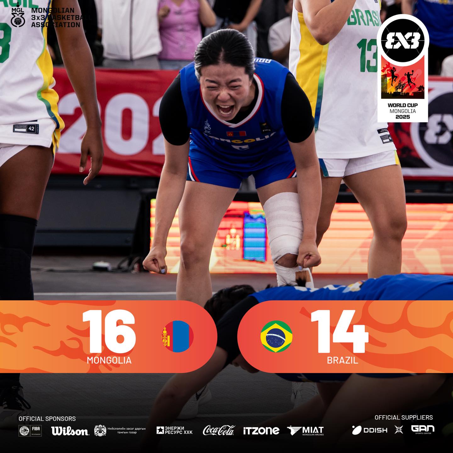 Сагсан бөмбөгийн “FIBA 3x3 World Cup” аварга шалгаруулах тэмцээн “Сүхбаатарын талбай”-д үргэлжилж байна. Манай эмэгтэй шигшээ баг өчигдөр хэсгийн эхний хоёр тоглолтоо Бразил, Испани улсуудын шигшээ багийн эсрэг хийлээ. Манай эмэгтэй шигшээ баг хэсгийн эхний тоглолтоо Бразилын шигшээ багийн эсрэг хийж, эцсийн мөчид 16:14-өөр хожлоо. Манай багийн тоглогч 18 настай Н.Нандин-Хүсэл эцсийн хожлын шидэлтийг хийж, ДАШТ-ий эхний хожлоо авлаа.