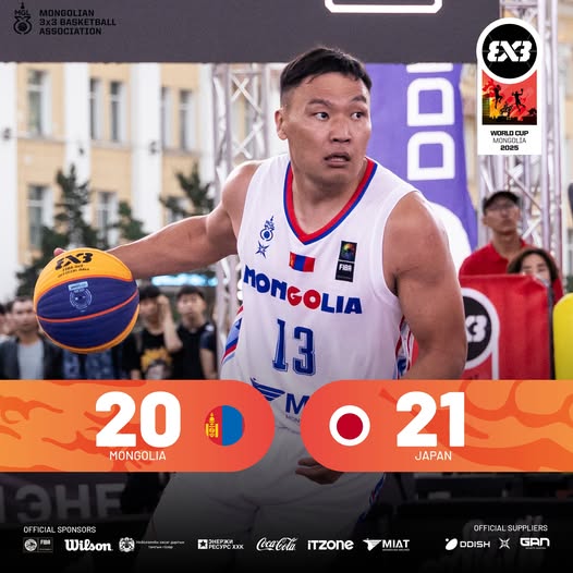 Сагсан бөмбөгийн “ФИБА 3х3” дэлхийн аварга шалгаруулах тэмцээний манай эрэгтэй багийн хэсгийн сүүлчийн тоглолтууд өчигдөр болов. Монгол Улсын эрэгтэй шигшээ баг нэг тоглогч дутуу байсан ч гайхалтай өрсөлдөөнийг Японы багийн эсрэг үзүүлж, 21:20-оор хожигдлоо. Хожлын дайтай хожигдол байлаа. Эцсээ хүртэл гурвуулаа тэмцэж чадлаа. Ийнхүү манай багийн хэсгийн сүүлийн хоёр тоглолт нь дууслаа. Манай эрэгтэй багийн ДАШТ-ий аялал энэ хүрээд өндөрлөж байна.