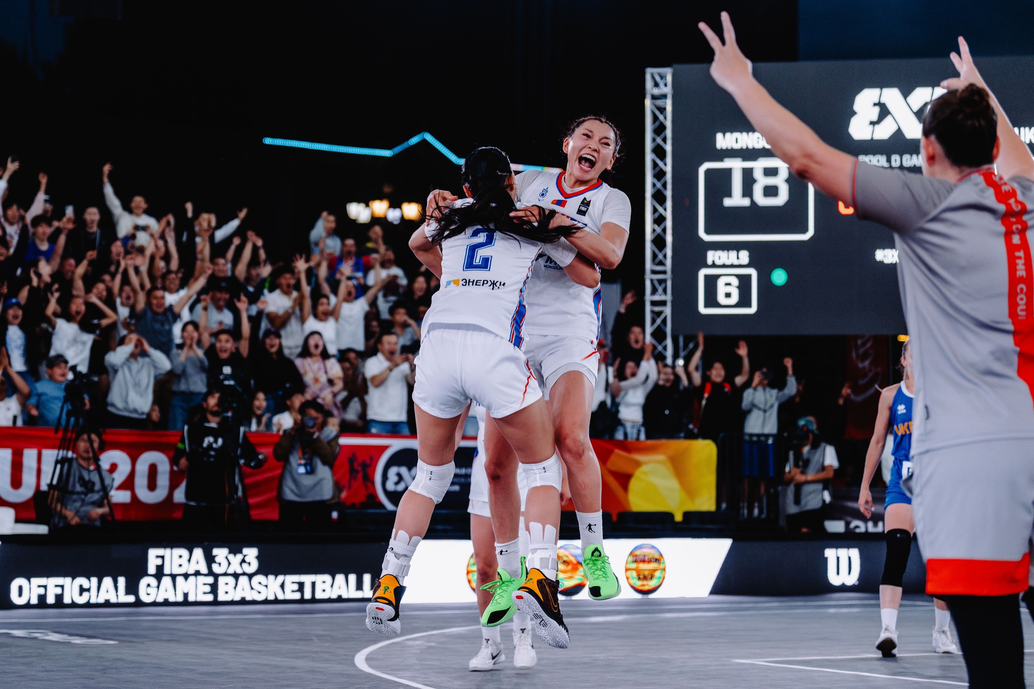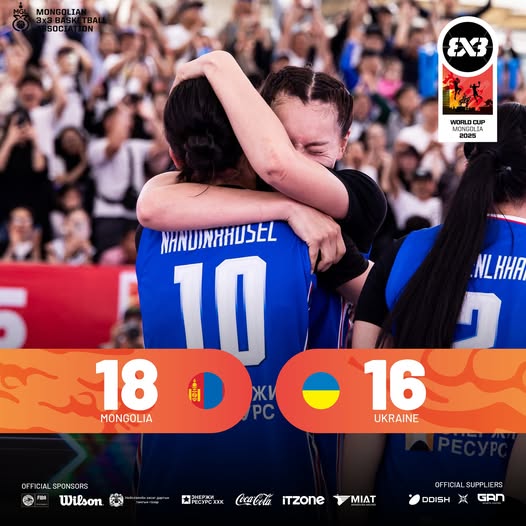 Монгол Улсын эмэгтэй шигшээ баг “FIBA 3x3 World Cup 2025” тэмцээний хэсгийн сүүлийн тоглолтоо Украин Улсын шигшээ багтай хийлээ. Үндсэн цагт хоёр баг 16:16-аар тэнцэж, нэмэлт цагт Монгол Улсын баг, Украины багийг О.Хулангийн хоёр онооны хожлын шидэлтээр 18:16-аар буулган авлаа. Ийнхүү Монгол Улсын эмэгтэйчүүдийн баг, Бразил, Герман, Украины багийг хожиж, Испани Улсын баг хожигдож, хэсгээсээ гурван хожил, нэг хожигдолтойгоор хоёрдугаар байраар хасагдах шатанд шалгарч байна. Маргааш манай баг шөвгийн наймд үлдэхийн төлөө Хятадын багтай тулна.