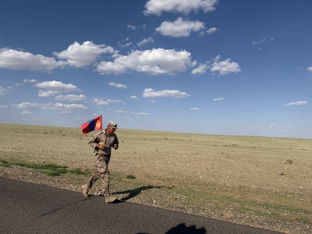 Зэвсэгт хүчний 123 дугаар ангийн хөгжимчин цэрэгжлийн спортын мастер ахлах ахлагч Э.Даваажамц Дундговь аймгийн Хулд суманд гүйж явна. Говьд нар шарж, хөрсөндөө 30 хэм хүртэл халуун байгаа ч 88 дахь өдрөө гүйж яваа түүний хувьд энэ нь асуудал биш болжээ.