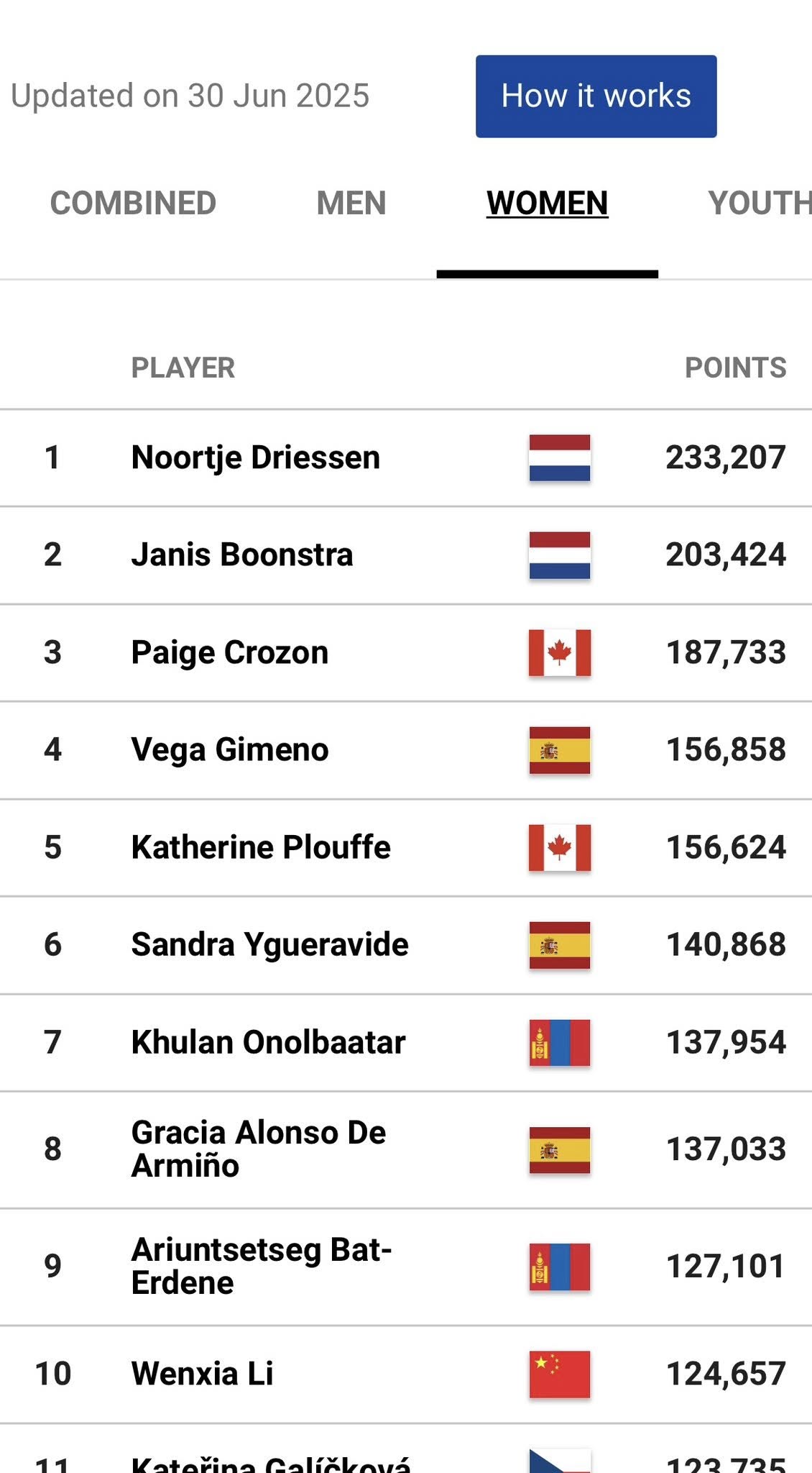 Дэлхийн аварга шалгаруулах тэмцээний дараагаар баг болон хувь тамирчдын дэлхийн чансаа шинэчлэгдсэн байна. Дэлхийн чансаагаар Монгол Улсын эмэгтэй шигшээ баг 5-р байрт, О.Хулан чансаагаар 7-р байрт, Б.Ариунцэцэг 9-р байр орж иржээ.