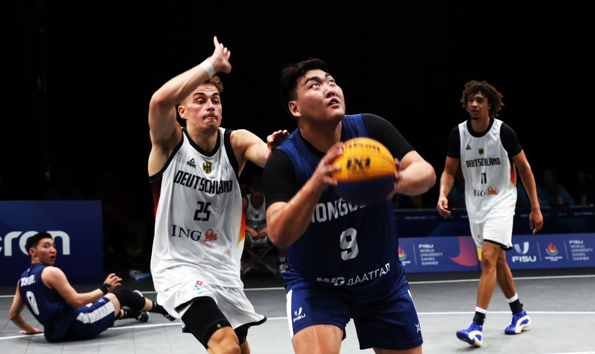 Дэлхийн оюутан залуучуудын универсиад их наадамд “Rhine-Ruhr -2025” Герман Улсад үргэлжилж байна. Сагсан бөмбөгийн 3х3 –ын эрэгтэй шигшээ баг эзэн орон буюу Германы багийг 21:13-ын харьцаатайгаар хожсоноор “D” хэсгээс Энэтхэг, Герман Улсын багийг хожиж , хоёр хожилтойгоор нэгээр гарч байна.