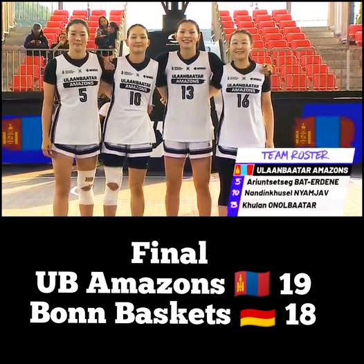 Сагсан бөмбөгийн 3х3-ын тэмцээнд Индонез Улсын Жакарта хотод үргэлжилж байна. “Jakarta women series”-т “UB Amazons” багийн охидууд маань эцсийн мөчид Германы багийг 19:18-аар хожлоо. Эхний тоглолтод манай баг Тайландад 19:15-аар хожигдсон билээ. Харин Тайландын баг нэмэлт цагт 18:17-оор Германыг буулгаж авснаар манай охидууд өнөөдөр 17:10 цагаас Францын "Орлеанс" багтай “Жакарта women series”-ийн шилдэг наймд тоглохоор боллоо.