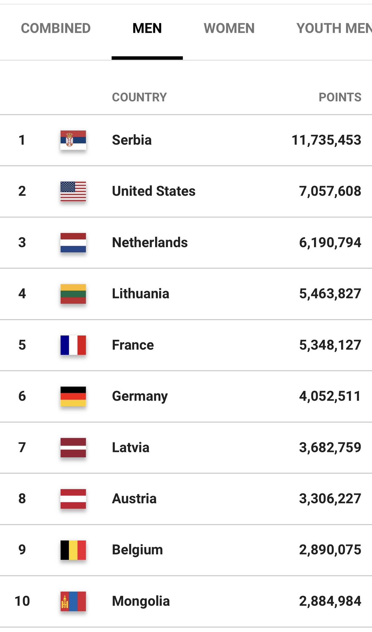 Олон улсын сагсан бөмбөгийн холбооны 3х3-ын дэлхийн чансааны 2025 оны дол дугаар сарын 31-ний өдрийн байдлаар Монгол Улс дэлхийн чансааны бүх ангиллаар дэлхийн “Топ-10”-т, эрэгтэй баг Ази тивийн чансааны нэг, эмэгтэй Ази тивийн чансааны хоёрт эрэмбэлэгдэж байна. Харин “U23” ангиллын эрэгтэй баг дэлхийн чансааны гурав, Азийн чансааны нэгдүгээрт, “U23” ангиллын эмэгтэй баг дэлхийн чансааны арав, Aзийн чансааны хоёрт бичигдсмэн байна.