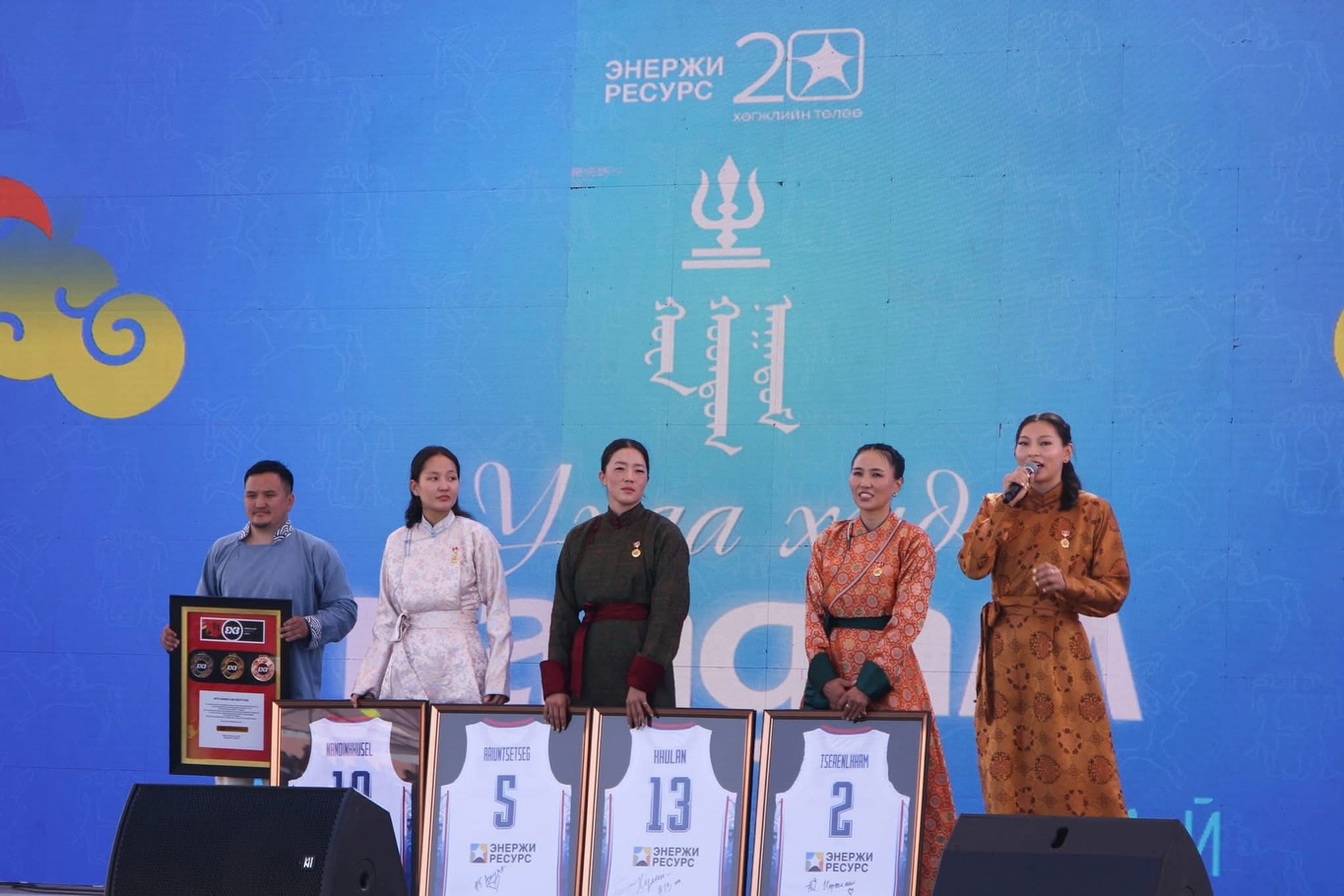 Монголын сагсан бөмбөгийн үндэсний шигшээ багуудын албан ёсны түнш “Энержи Ресурс” ХХК-ний 20 жилийн ойн баярт баяр үргэлжилж байна. Тус компанийн хамт олонд Монгол Улсын 3х3-ын эмэгтэй шигшээ багийн тамирчид, “ФИБА 3х3” дэлхийн аварга шалгаруулах тэмцээний медалийн дээж, шигшээ багийн өмсгөлөө дурсгал болгон гардуулан өглөө. Монголын сагсан бөмбөгийн шигшээ багуудаа бүх талаар дэмжин, улсынхаа хөгжил, эдийн засагт үнэтэй хувь нэмэр оруулж буй “Энержи Ресурс” ХХК хамт олондоо талархал илэрхийлж, 20 жилийн ойн баярын мэнд хүргэе.