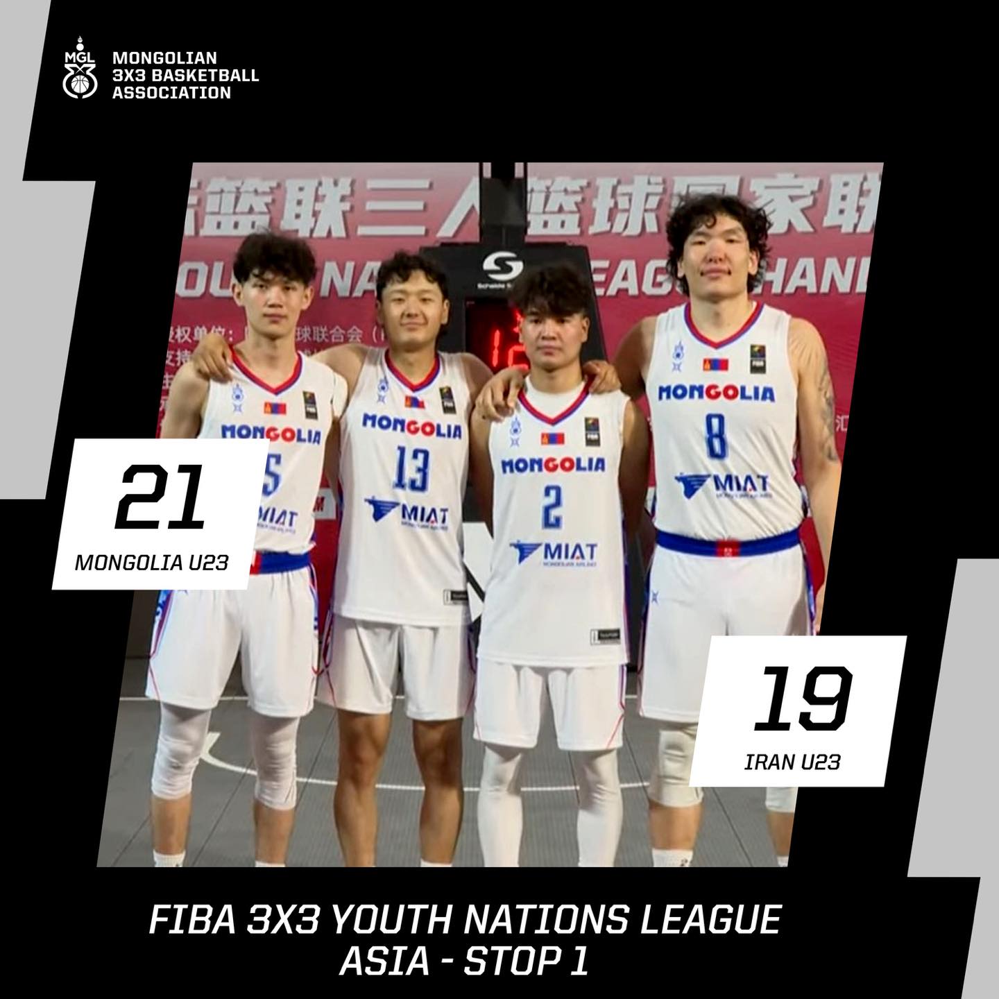 Хятад Улсад зохион байгуулагдаж буй сагсан бөмбөгийн “FIBA 3x3 Youth Nations League 2025” тэмцээний “Stop-1”-д манай “U23” ангиллын эрэгтэй баг түрүүлэв. Тус тэмцээнд Монгол Улсын залуучуудын эмэгтэй, эрэгтэй шигшээ баг оролцож байгаа билээ. Эрэгтэй баг Малайзыг багийг 21:16-аар, Казахстаны багийг 21:13-аар, уламаар Хятад, Японы багийг хожиж финалд Иран Улсын багийг 21:19-өөр хожиж түрүүллээ.