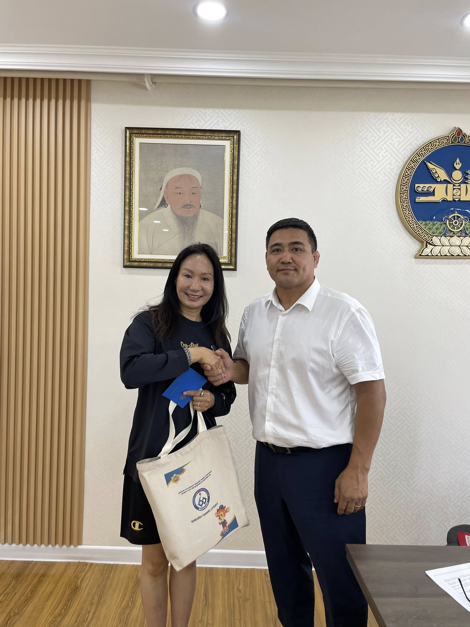Дархан-Уул аймгийн Биеийн тамир, спортын газрын дарга А. Амараа, Дархан-Уул аймгийн хөнгөн атлетикийн холбооны тэргүүлэгч гишүүн, спортын мастер М.Отгонтуяаг хүлээн авч уулзаж хүндэтгэл үзүүлэв. Тус уулзалтын үеэр М.Отгонтуяад Дархан-Уул аймгийн Биеийн тамир, спортын газрын 60 жилийн ойн медаль, дурсгалын зүйл гардуулан, баяр хүргэлээ.