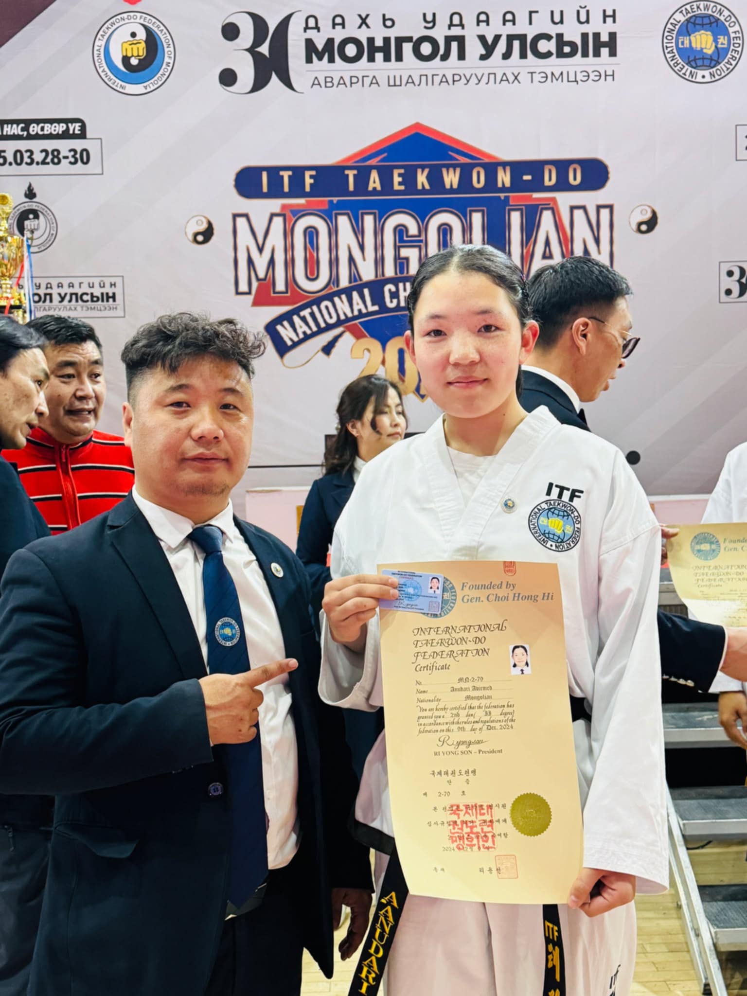-Олон улсын таеквондогийн спортын Монгол Улсын спортын мастер цолтой. “ITF” холбооны олон улсын хар бүс, хоёрдугаар дантай тамирчин байгаа.