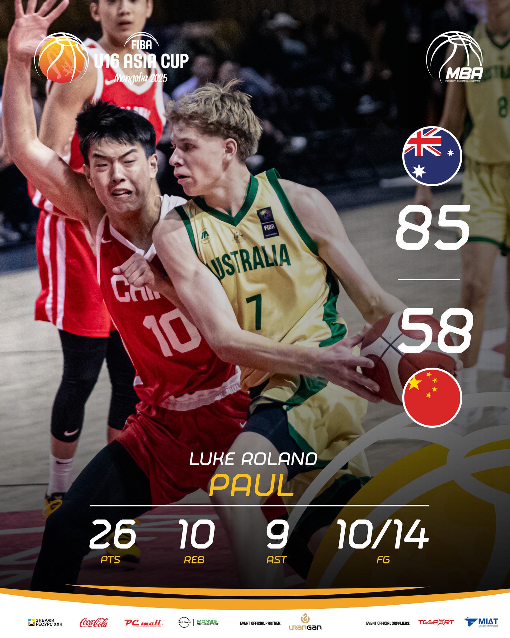Монголын сагсан бөмбөгийн холбоо 2025 оны наймдугаар сарын 31-нээс ес дүгээр сарын 7-ны өдрүүдэд Улаанбаатар хотноо “FIBA U16 Asia Cup-2025” тэмцээнийг амжилттай зохион байгууллаа. Австрали Улсын шигшээ баг БНХАУ-ын шигшээ багийг хожсоноор “FIBA U16” ангиллын Ази тивийн аварга шалгаруулах тэмцээний аварга багаар тодорлоо. Шигшээ тоглолтод Австралийн багаас Luke Roland Paul 26 оноо, 10 самбар, есөн оновчтой дамжуулалтыг хийсэн байна.