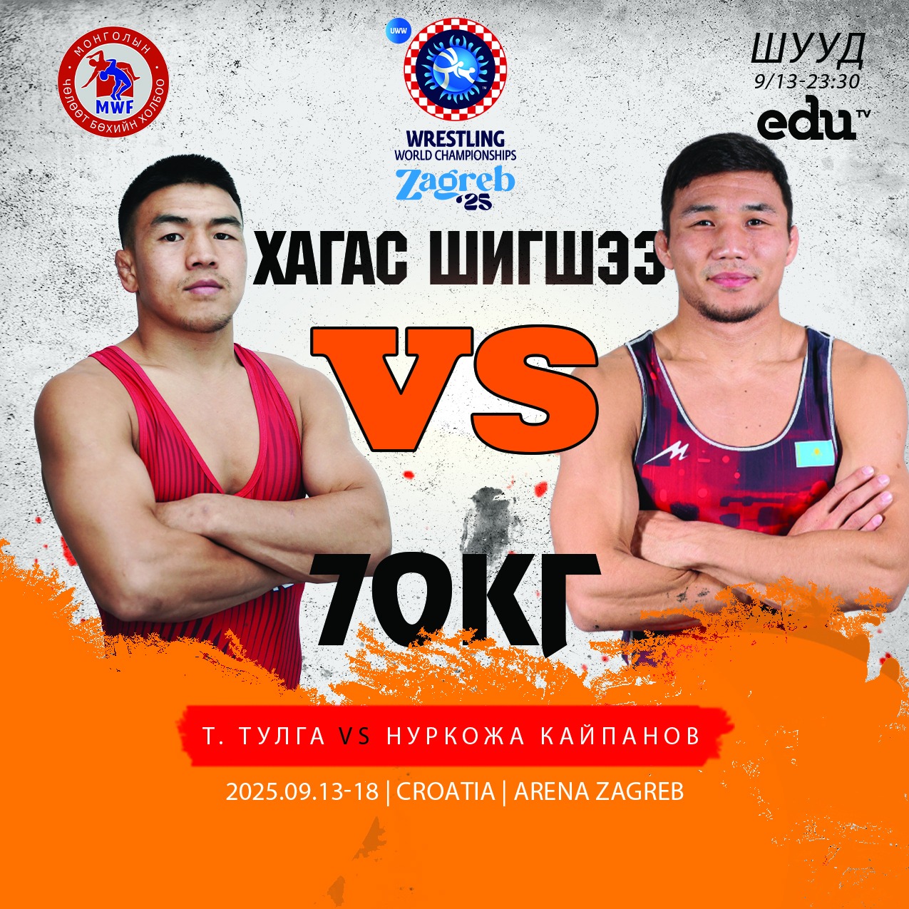 “Загреб-2025” чөлөөт бөхийн насанд хүрэгчдийн ДАШТ-ий эхний өдөр Монголын дөрвөн бөх хүч сорин өрсөлдөв. ДАШТ-ий хүрэл медальт, гавьяат тамирчин Төмөр-Очирын Тулга 70 кг-ын жингийн хагас шигшээд шалгараад байна. МУГТ Т. Тулга эхний тойрогт Молдавын Дикон Василег 2:0-ээр, хоёрдугаар тойргийн барилдаанд Болгарын Георгиев Илиевийг даралтаар цэвэр ялж, шигшээ наймд үлдсэн. Тэрбээр дөнгөж саяхан Гүржийн бөх, Европын аваргын мөнгө, хүрэл медальт Акаки Кемертелидзег 11:0 оноогоор цэвэр ялж, хагас шигшээд шалгарлаа. Т.Тулга тун удахгүй 23:30 цагаас Казахстаны бөх, ДАШТ-ий алт, мөнгөн медальт, Азийн гурван удаагийн аварга Нуркожа Кайпановтай хүч сорино.