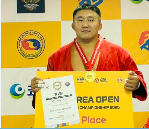 Өмнөд Солонгос Улсад болсон “Korea Open-2025” самбо бөхийн олон улсын тэмцээнээс ОУХМ Батдэлгэрийн Дарханбаатар медаль хүртжээ. Тэрбээр хоёр төрөлд спорт болон байлдааны самбо бөхийн 98 кг-ын жинд түрүүлж алтан медаль хүртсэн байна. “Korea Open-2025” самбо бөхийн олон улсын тэмцээн Франц, Орос, Киргизстан, Тажикстан, Өмнөд Солонгос, Тайланд, Монгол зэрэг орны самбочид өрсөлджээ.