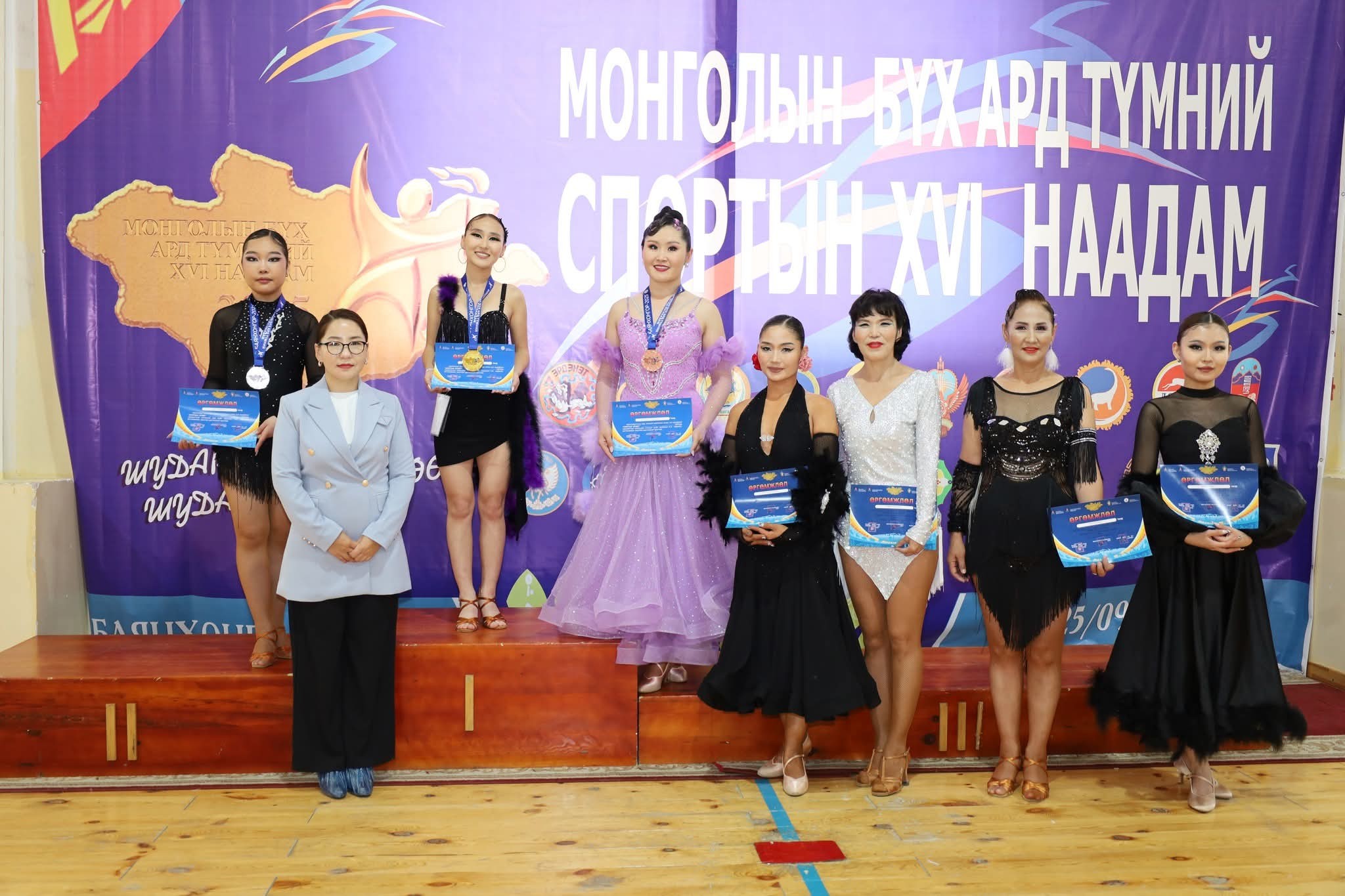 Мөн "Соло латин" бүжгийн төрөлд Б.Хонгорзул хүрэл медаль, "Хосын латин" бүжгийн төрөлд Г.Гэрэлт-Ирээдүй, Б.Золжаргал нар хүрэл медаль, "Хосын стандарт" бүжгийн төрөлд 1-р байрт Ч.Анхбаяр, Г.Энхжин нар алтан медаль авсан байна. Ийнхүү бүжгийн спортын төрлийн багийн нэгдсэн дүнгээр алтан медаль тус тус хүртжээ.