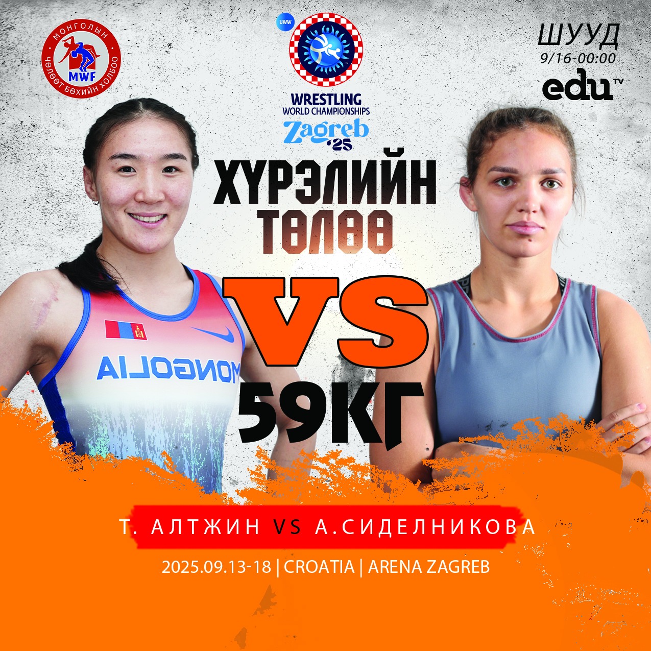 | Т.Алтжин ДАШТ-ий хүрэл медалийн төлөө ОХУ-ын А.Сиделниковатай барилдана |