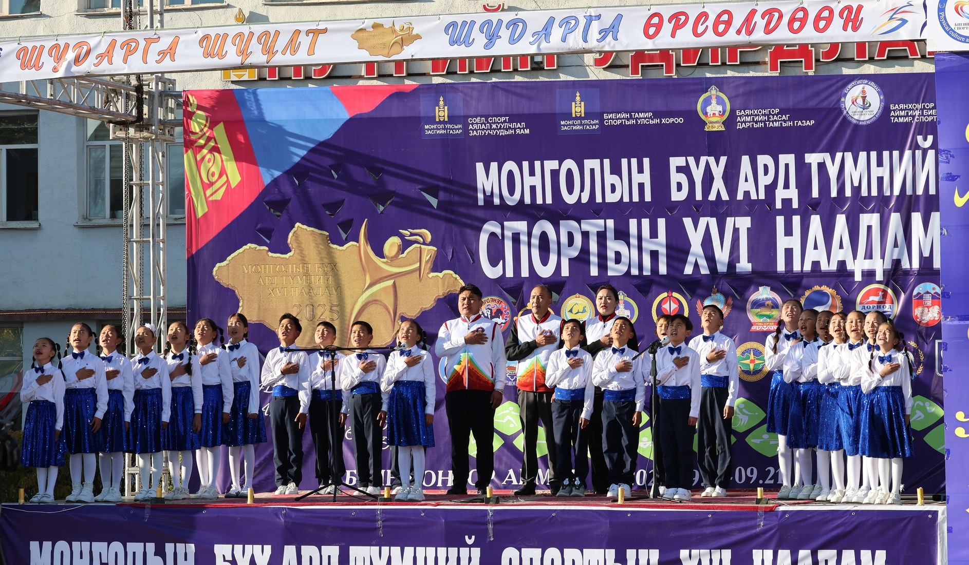 Дөрвөн жилд нэг удаа зохион байгуулдаг Монголын бүх ард түмний спортын зуны XVI наадам Улаанбаатар, Баянхонгор аймагт нэгэн зэрэг болж байгаа билээ. Өчигдөр тус наадмын нээлтийн ёслол Баянхонгор аймагт болж, Баянхонгор аймгийн Засаг дарга Д.Мөнхсайхан МБАТСН-ыг албан ёсоор нээж, ССАЖЗЯ-ны Төрийн нарийн бичгийн дарга Б.Даваацэрэн мэндчилгээ дэвшүүлэв.