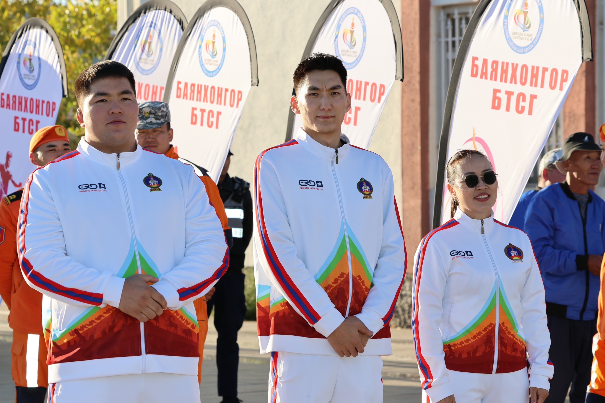 XVI наадмын тугийг пара таеквондо-гийн “Парис-2024” паралимпын аварга, Хөдөлмөрийн баатар У.Сүрэнжав, боксын дэлхийн цомын хошой хүрэл медальт, Азийн аваргын хүрэл медальт, ОУХМ Т.Энхтөр, пауэрлифтингийн улсын аварга, бодибилдингийн спортын ОУХМ Н.Нэмэхбаяр, чөлөөт бөхийн улсын аварга, Азийн аваргын мөнгөн медальт, ОУХМ Э.Бямбадорж нар өргөн мандуулав.