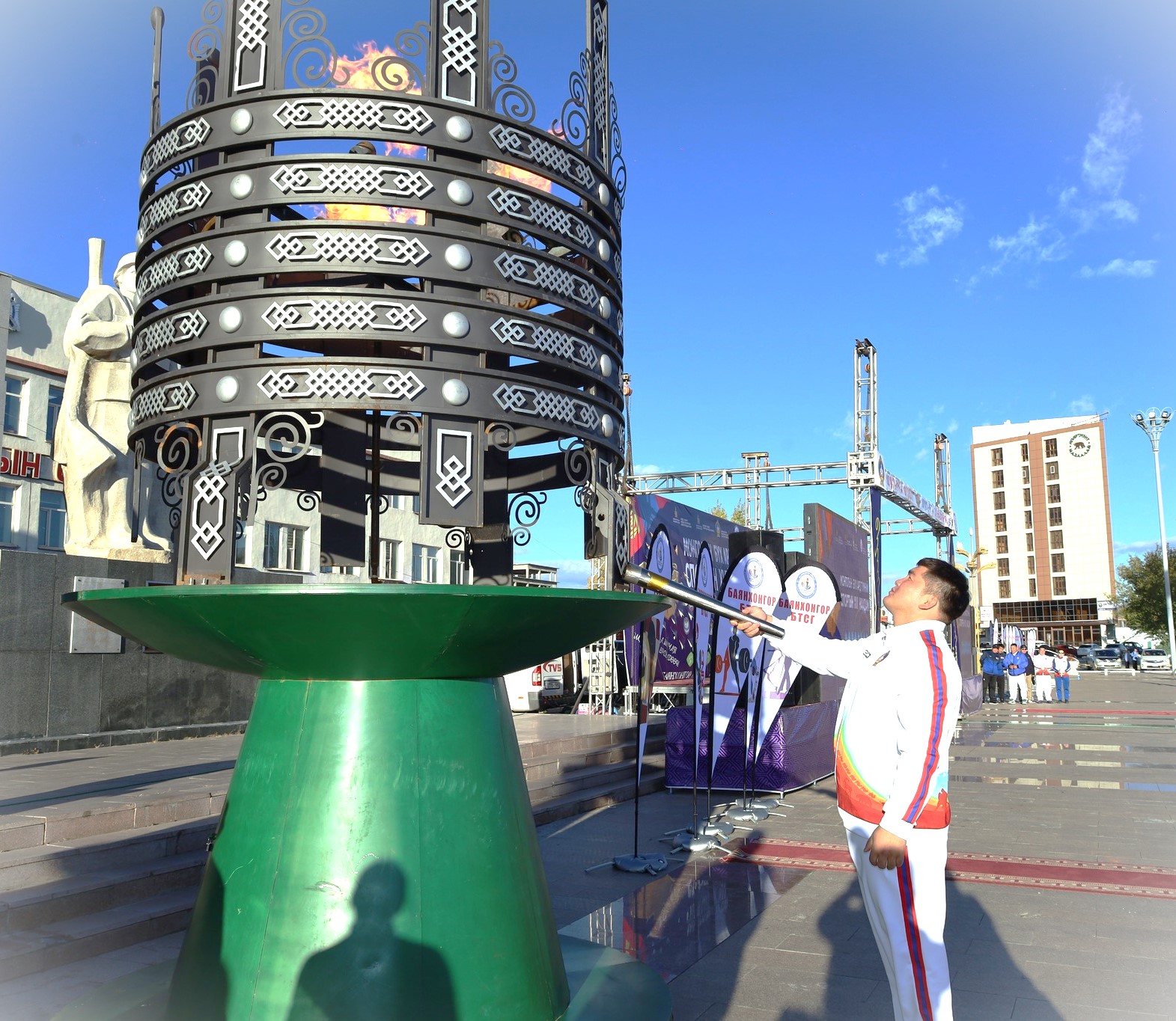 | Бүх ард түмний наадмын галт бамбарыг улсын арслан Э.Батмагнай асаалаа |