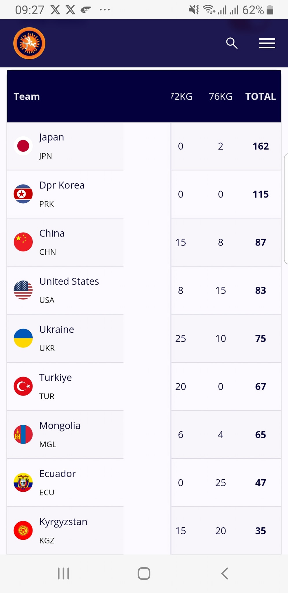 2. Хойд Солонгос - 115 оноо /2 алт, 2 мөнгө, 1 хүрэл, 2 шагналт/