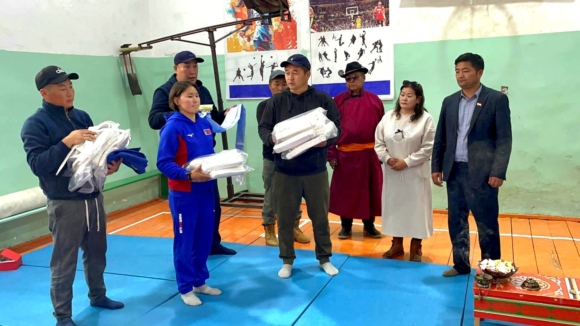 | Л.Сосорбарам Эрдэнэцогт сумын хүүхдүүдэд жүдо бөхийн өмсгөл гардуулан өглөө |