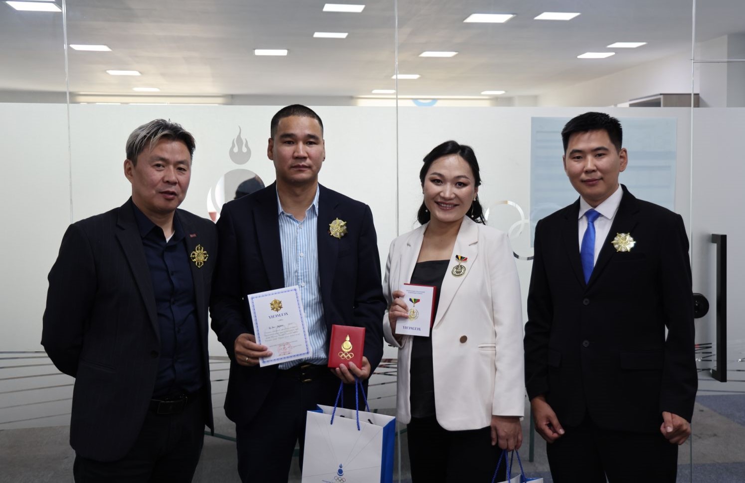Ойн баярыг тохиолдуулан Монгол Улсад спорт, олимпизмыг сурталчлах, олимпын хөдөлгөөнийг хөгжүүлэхэд оруулсан хувь нэмрийг нь үнэлж, “MNB” спорт сувгийн ерөнхий найруулагч Ж. Батбаярыг МҮОХ-ны дээд шагнал “Алтан- Очир” одонгоор, зураглаач Ц.Зол-Эрдэнэ, орчуулагч редактор Э. Ерөөлт нарыг “Олимпын алдар” одонгоор, сурвалжлагч Т. Батцэнгэлийг “Алтан” медалиар тус тус шагнав.