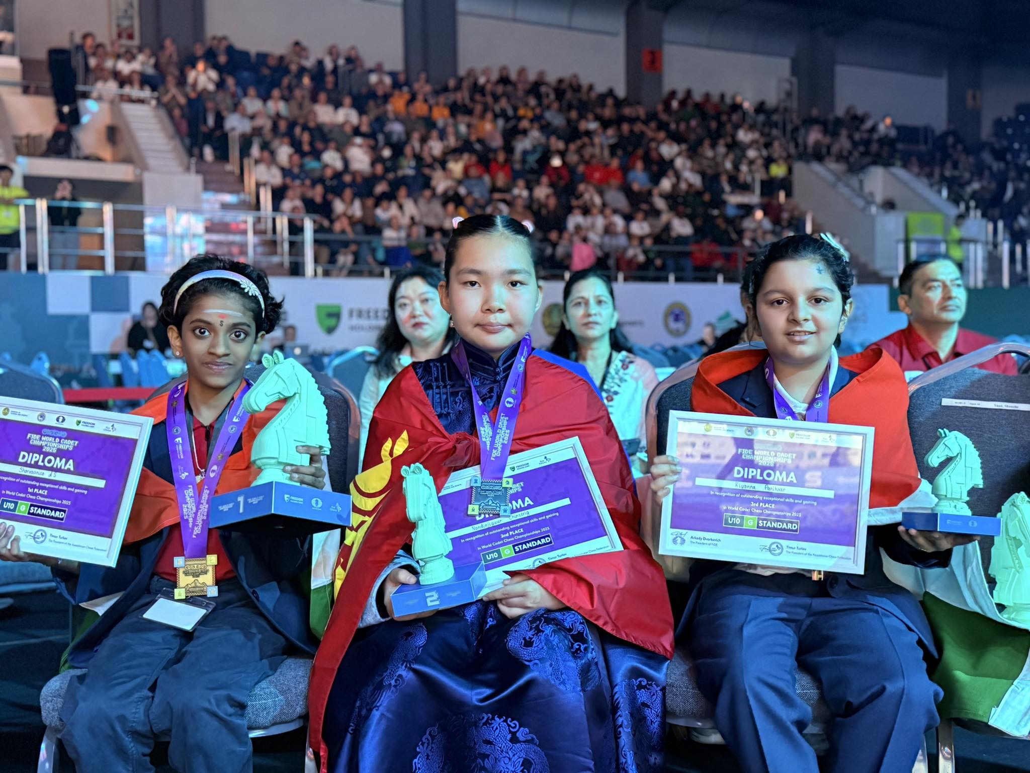 Шатрын өсвөр үеийн дэлхийн аварга шалгаруулах тэмцээнээс Чинзоригийн Нандинжигүүр мөнгөн медаль хүртжээ . Түүнд ДАШТ-ий мөнгөн медалийг ОУШХ-ны ерөнхийлөгч Arkady Dvorkovich-оос гардуулан өгсөн байна. Энэ удаагийн шатрын өсвөрийн ДАШТ-д 800 гаруй шатарчи өрсөлджээ.