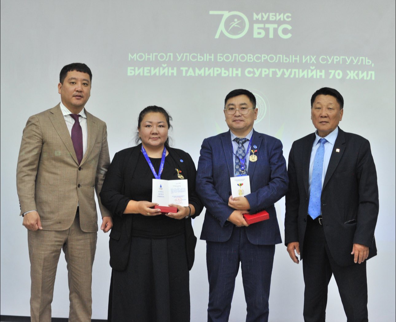 МҮОХ-ноос МУБИС-ийн Биеийн тамирын сургуулийн багш, ажилчдыг шагнаж урамшууллаа. МУБИС-ийн Биеийн тамирын сургуулийн 70 жилийн ойн хүрээнд спортын хөгжил, олимпын үнэт үзэл санааг түгээн дэлгэрүүлэх үйлсэд үнэтэй хувь нэмэр оруулсныг үнэлж, Аялал жуулчлалын багш С.Мөнхнасан, Хөтөлбөрийн албаны ажилтан Х.Должинханд нарыг Монголын үндэсний олимпын хорооны “Алтан медаль”-аар шагнав.