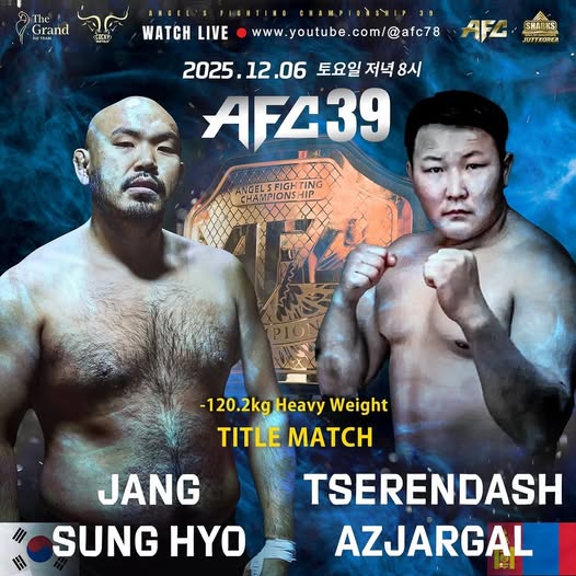 Холимог тулааны “AFC” Angel s Fightting championship-ийн 120.2 кг-ын хүнд жингийн аваргын төлөөх тулаан 2025 оны арванхоёрдугаар сарын 6-ны өдөр болно. Тус тулаанд Цэрэндашийн Азжаргал, Өмнөд Солонгосын Sung Hyon Jang-тай тулалдана.