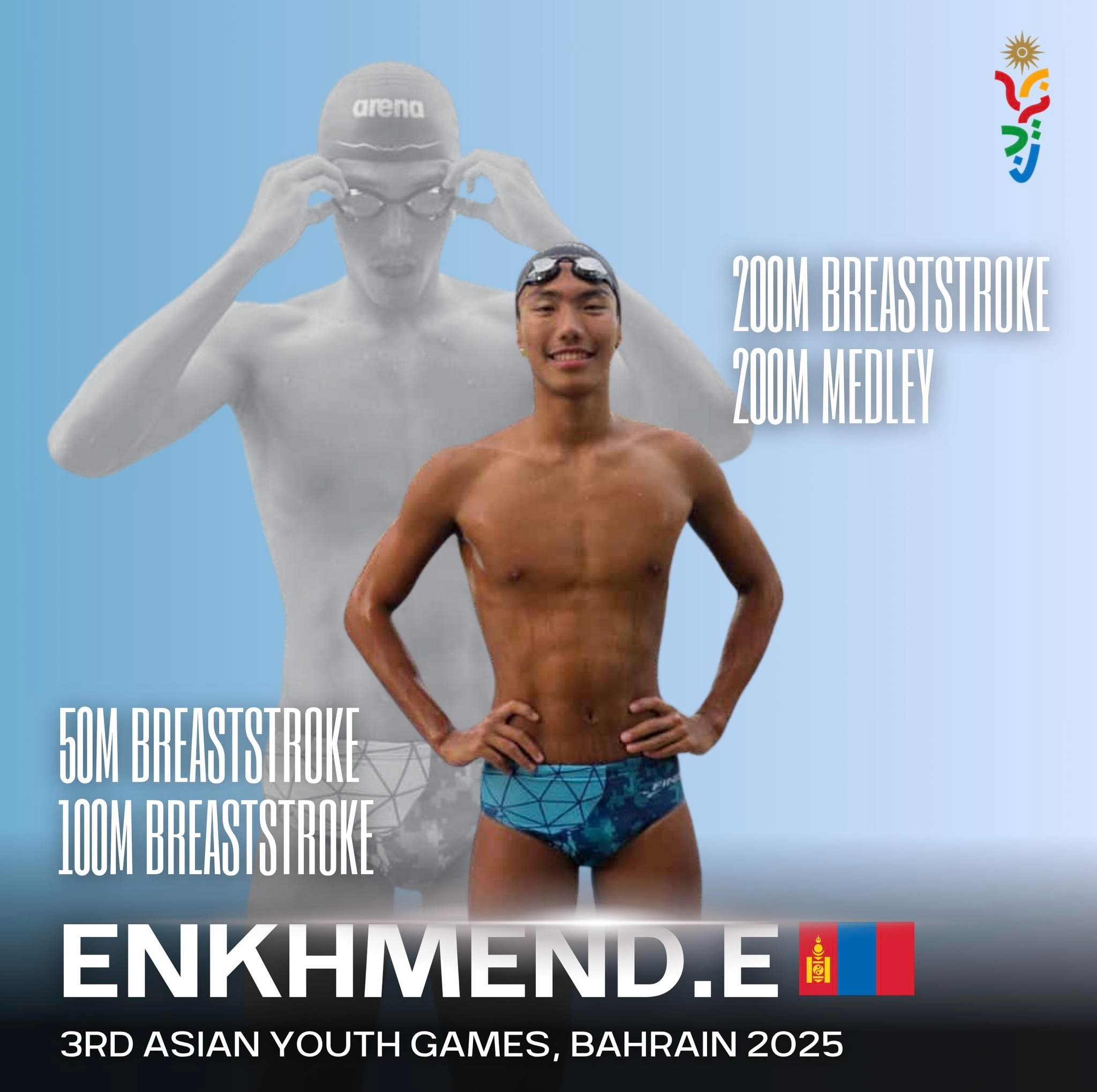Азийн залуучуудын “Бахрейн-2025” наадмын усан спортын ОУХМ Энхтөрийн Эрхэс 50 м-ийн араар даллах сэлэлтийн төрөлд мөнгөн медаль хүртлээ. Тэрбээр түүхэн амжилтаар Азийн залуучуудын наадмын медалийн буухиаг үргэлжүүлж байна. Тус 50 м-ийн араар даллах төрөлд нийт 32 тамирчин гараанд гарсан бөгөөд тамирчин Э. Эрхэс финалын шатны уралдаанд 25.98 секундын амжилтаар мөнгөн медаль хүртлээ.