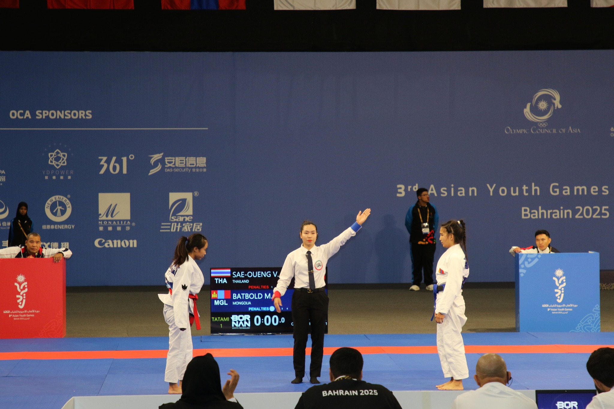 Азийн залуучуудын III наадмын долоо дахь өдөр өчигдөр жюү жицү бөхийн барилдаан “Exhibition World Bahrain” ордонд ширүүн өрсөлдөөн дунд үргэлжиллээ.