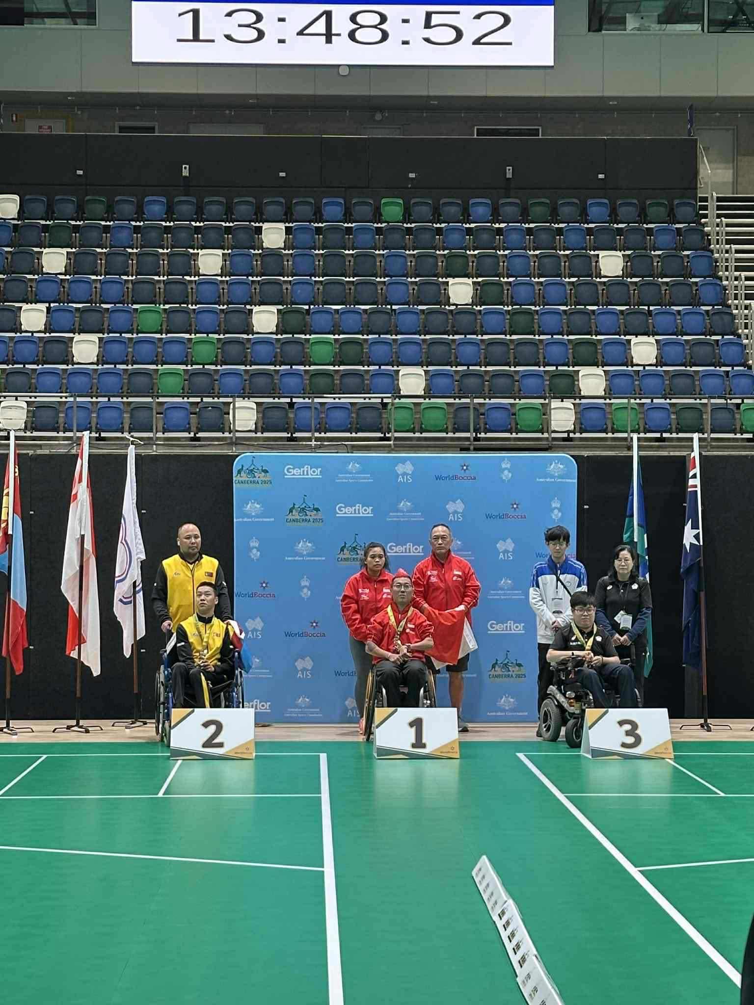 Австрали Улсын Канберра хотод пара бочигийн “World Boccia Challenger 2025” олон улсын тэмцээн болж байна. Тэмцээний эрэгтэйчүүдийн “BC1” ангилалд Үндэсний шигшээ багийн тамирчин, спортын мастер Т.Мөнхдэмбэрэл мөнгөн медаль хүртлээ. Тэрбээр хэсэгтээ Тайвань, Австрали Улсын тамирчдыг ялж, шигшээд Сингапур Улсын тамирчинд ялагдсанаар мөнгөн медаль хүртэв.