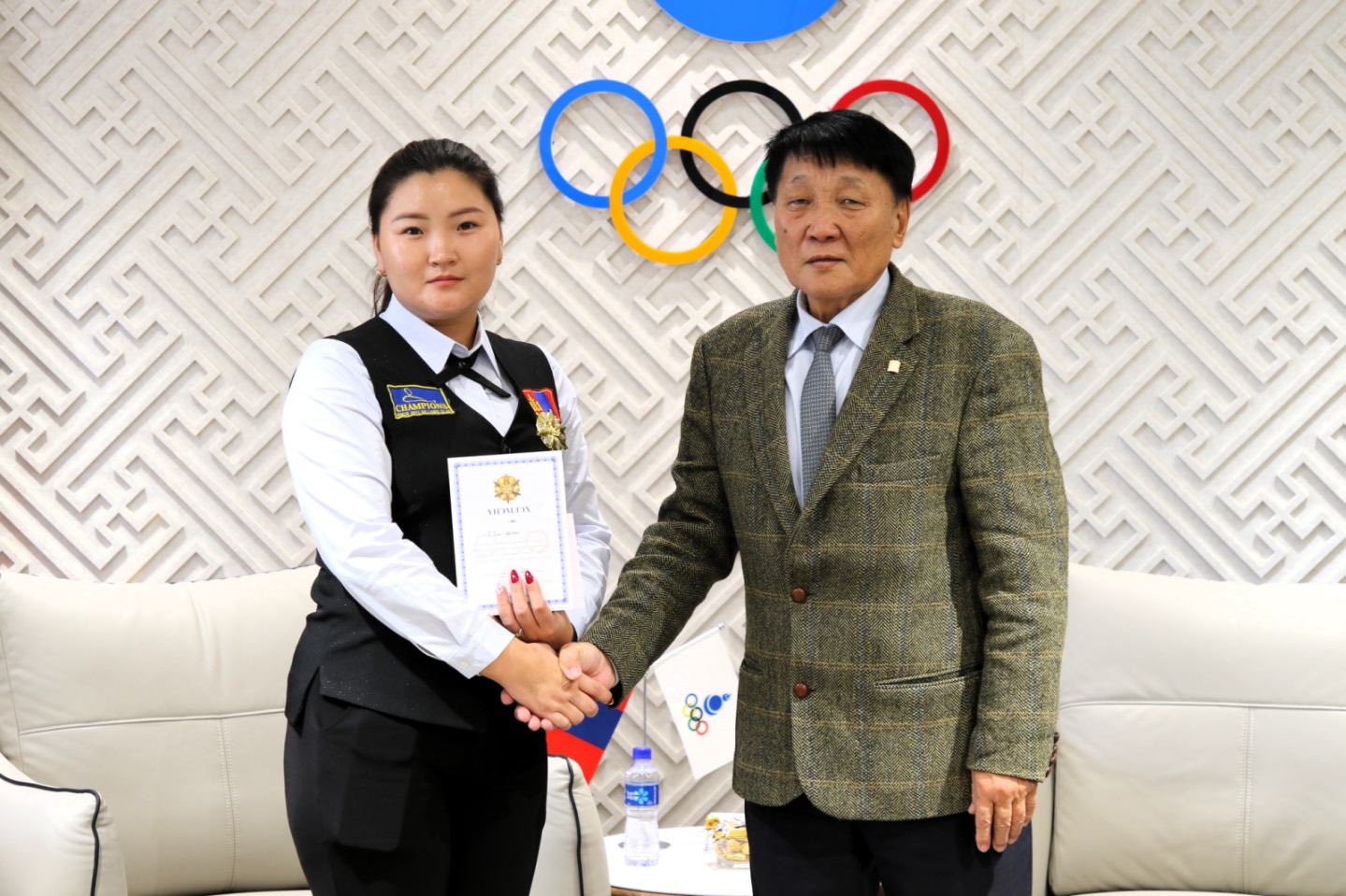 Йордан Улсын Амман хотод болсон хэйболын насанд хүрэгчдийн Азийн аварга шалгаруулах тэмцээний эмэгтэйчүүдийн ангилалд алтан медаль хүртэж, Монгол Улсынхаа төрийн дууллыг эгшиглүүлсэн ОУХМ Г.Ган-Орхоныг “Олимпын Алдар” одонгоор шагнав.