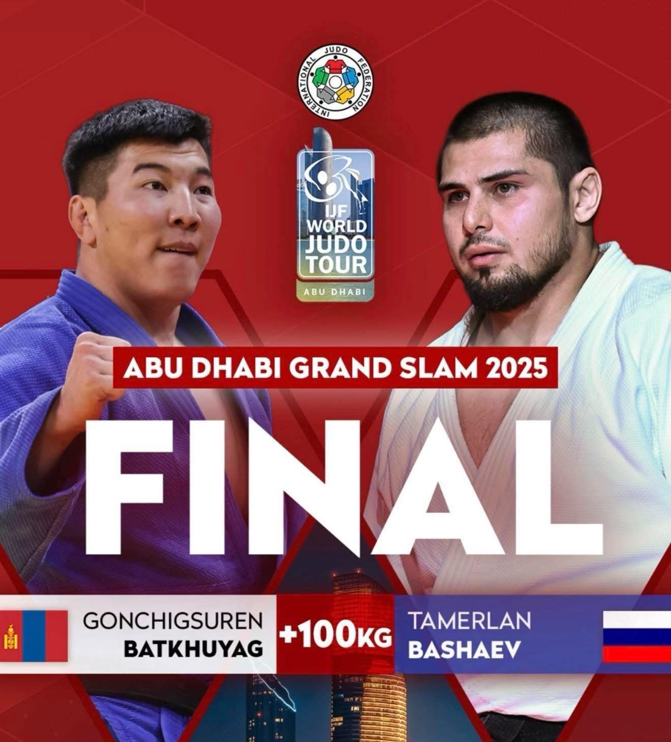Олон улсын жүдо бөхийн холбоо, “IJF”-ийн цуврал “Гран слам” болох “ Абу Даби-2025” тэмцээн АНЭУ-ын Абу Даби хотноо боллоо. Тус “Их дуулга”-ын сүүлийн өдөр эрэгтэйчүүдийн +100 кг-ын жинд өрсөлдсөн, Үндэсний шигшээ баг, “Хилчин” спорт хорооны тамирчин, ОУХМ Батхуягийн Гончигсүрэн олимп, дэлхийн хүрэл медальт, ОХУ-ын тамирчин Тамерлан Башаевыг үндсэн цагт ялж “Абу Даби-2025” их дуулга тэмцээний аварга боллоо.