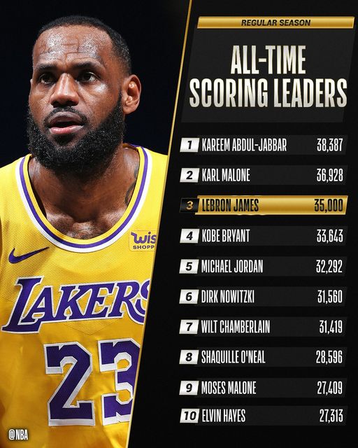 “Лос-Анжелес Лейкерс” багийн супер од Леброн Жеймс 35 мянга дахь оноогоо авч, Америкийн үндэсний сагсан бөмбөгийн холбооны түүхэнд 35 мянган оноонд хүрсэн гурав дахь тамирчин боллоо. Түүнээс өмнө “Лос-Анжелес Лейкерс” багийн тоглогч асан Карим Абдул-Жаббар, “Юта Жазз” багийн тоглогч асан Карл Мэлоун нар уг амжилтад хүрсэн юм.