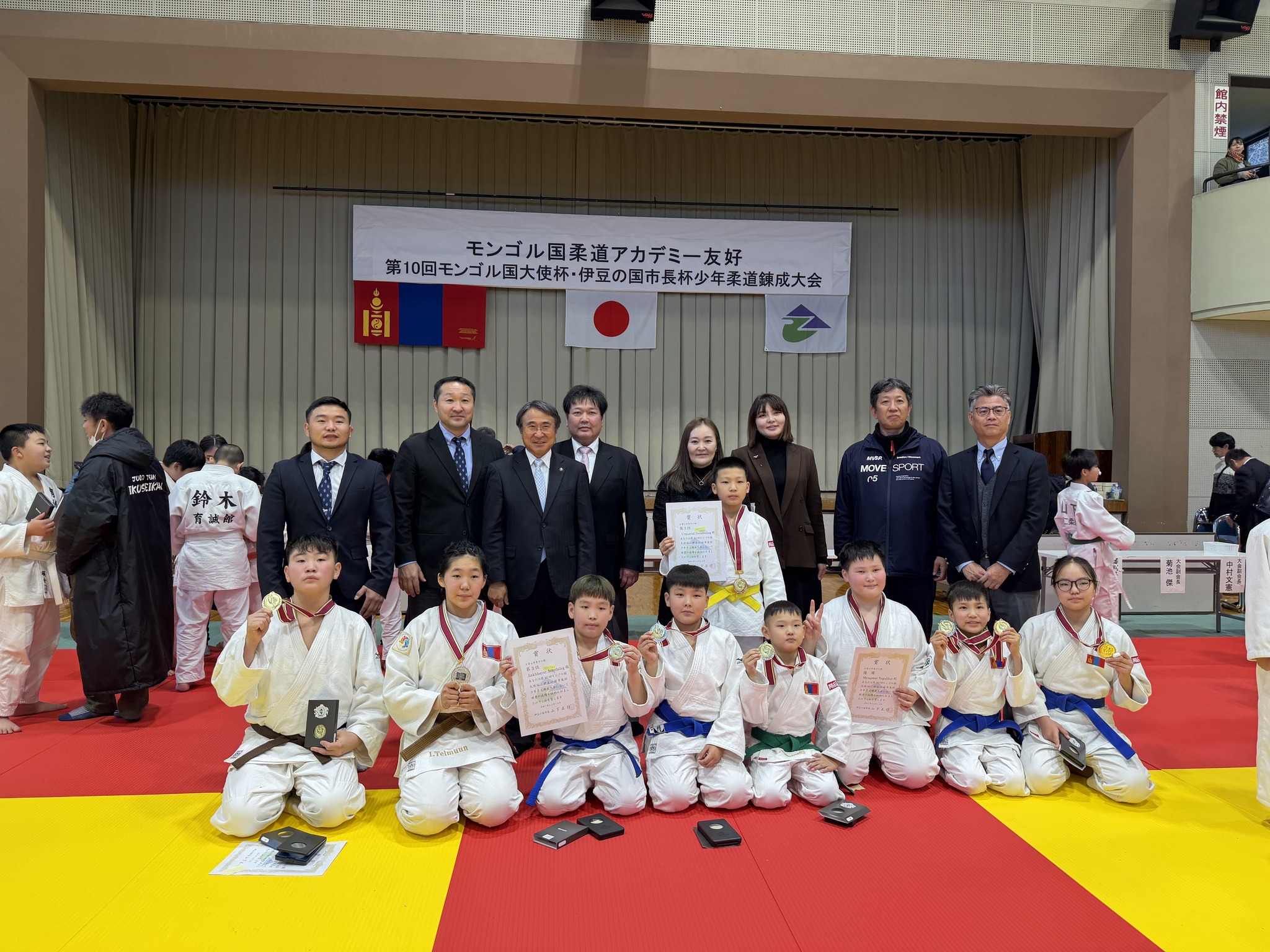 Монгол Улсын Улаанбаатар хотын Сонгинохайрхан дүүрэг, Шизүока мужийн Изүнокүни хоттой эгч дүү хотын хамтын ажиллагааны хүрээнд зохион байгуулагдсан энэ удаагийн тэмцээнд “Монголын жүдо бөхийн академи”-аас өсвөрийн арван тамирчин өрсөлдөв.