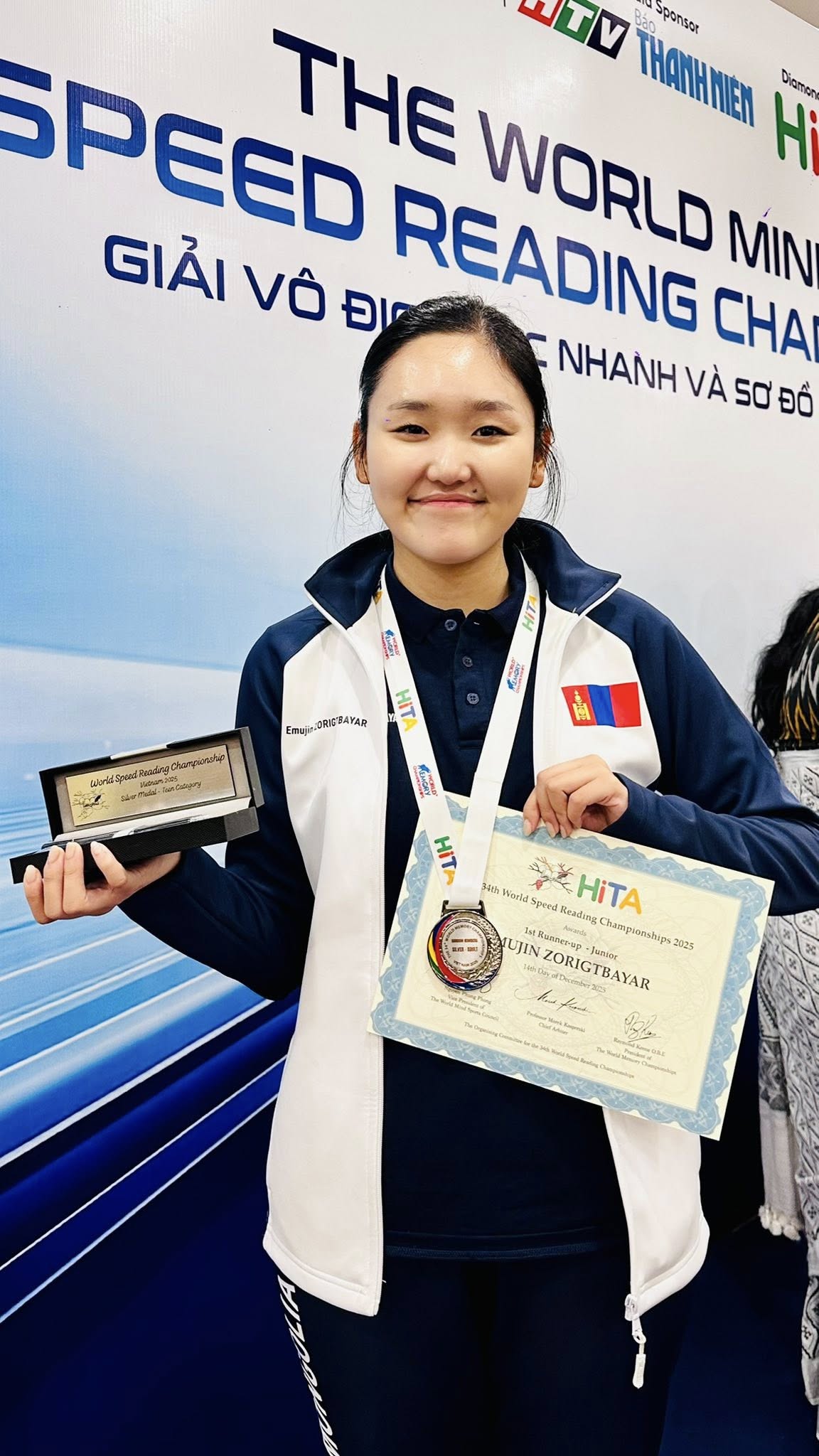 Монгол Улсаас хурдан уншлагын олон улсын тэмцээнд оролцон анхны медалийг хүртсэн тамирчин бол Х.Хатанбаатар багш, харин удаах тамирчин нь ДАШТ-ээс мөнгөн медалийг Б.Баасандорж багш хүртэж байсан бол ийнхүү уншлагын төрөлд З.Эмүжин мөнгөн медаль хүртэж амжилтын буухиаг үргэлжлүүллээ. Харин 2026 онд З.Эмүжин маань насанд хүрэгчдийн ангилалд өрсөлдөнө.