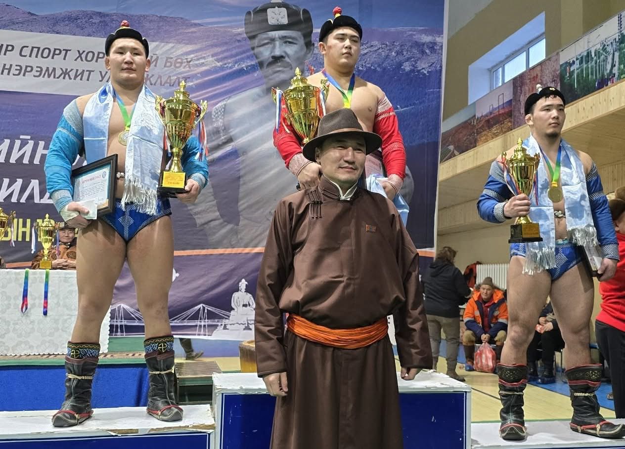 Өмнөговь аймгийн Сэврэй сумын харьяат “Эв Монгол” клубийн бөх сумын наадмын гурван түрүүтэй, сумын заан С.Баярбаатар.